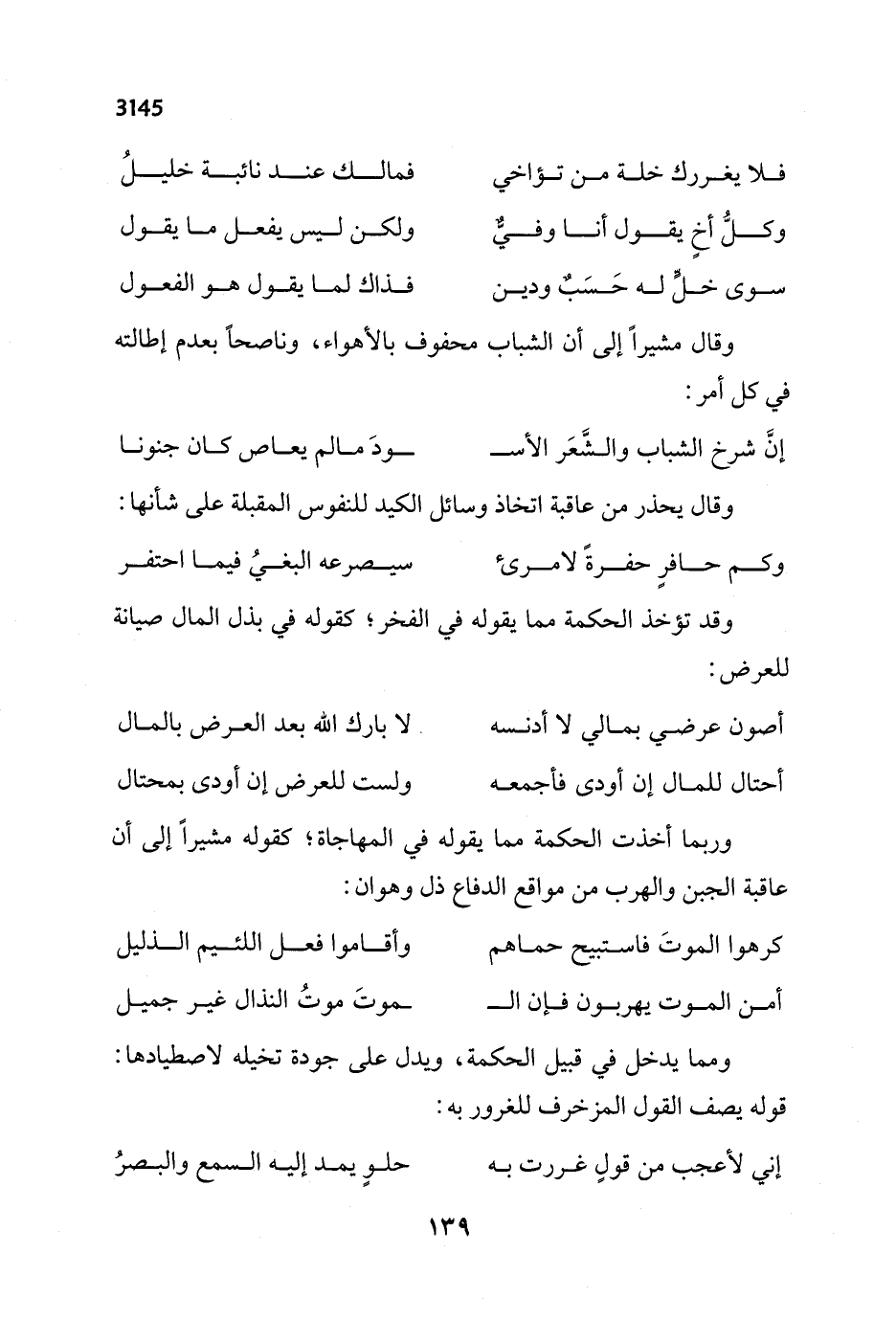 وقد تؤخذ الحكمة مما يقوله في الفخر؛ كقوله في بذل المال صيانة للعرض: