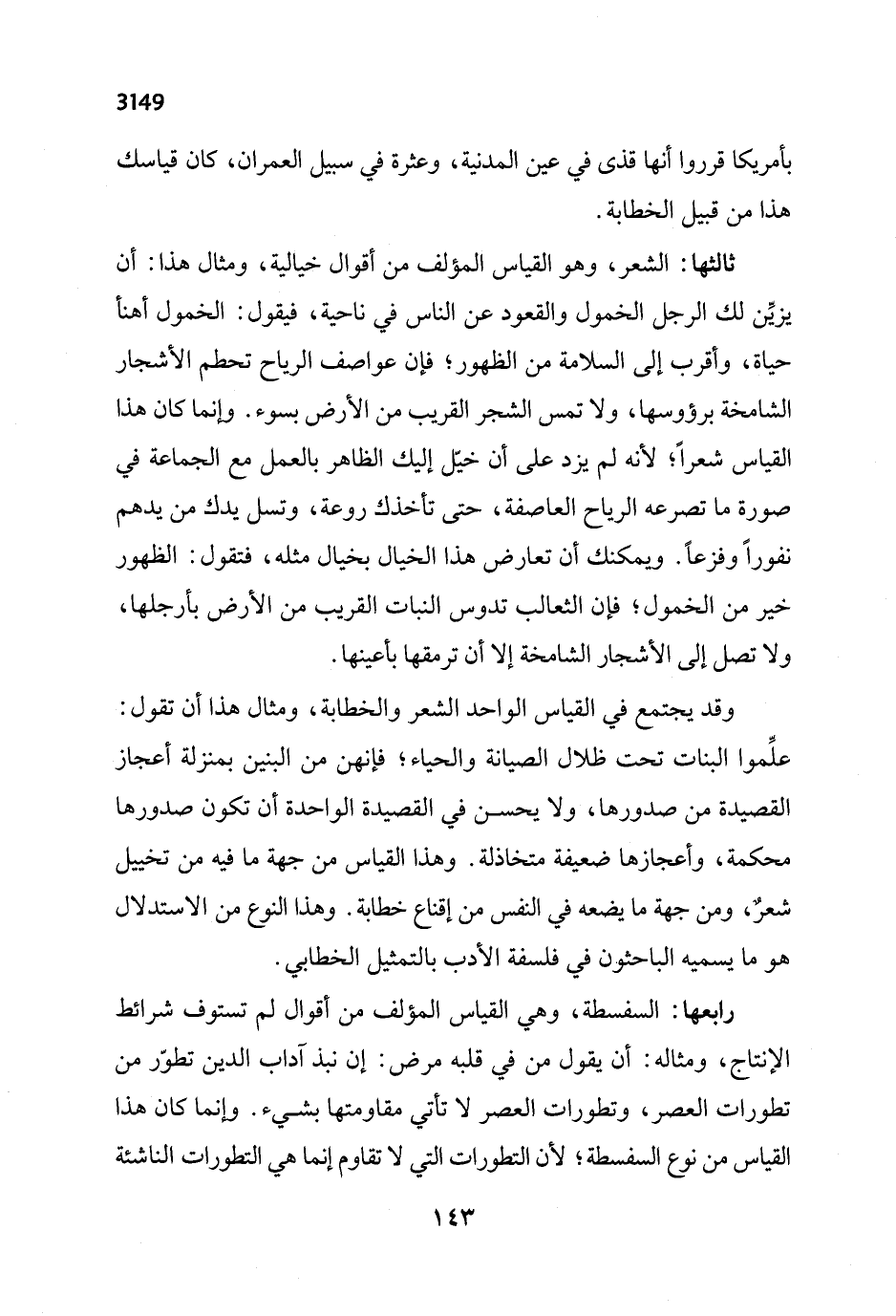 بأمريكا قرروا أنها قذى في عين المدنية، وعثرة في سبيل العمران، كان قياسك هذا من قبيل الخطابة.