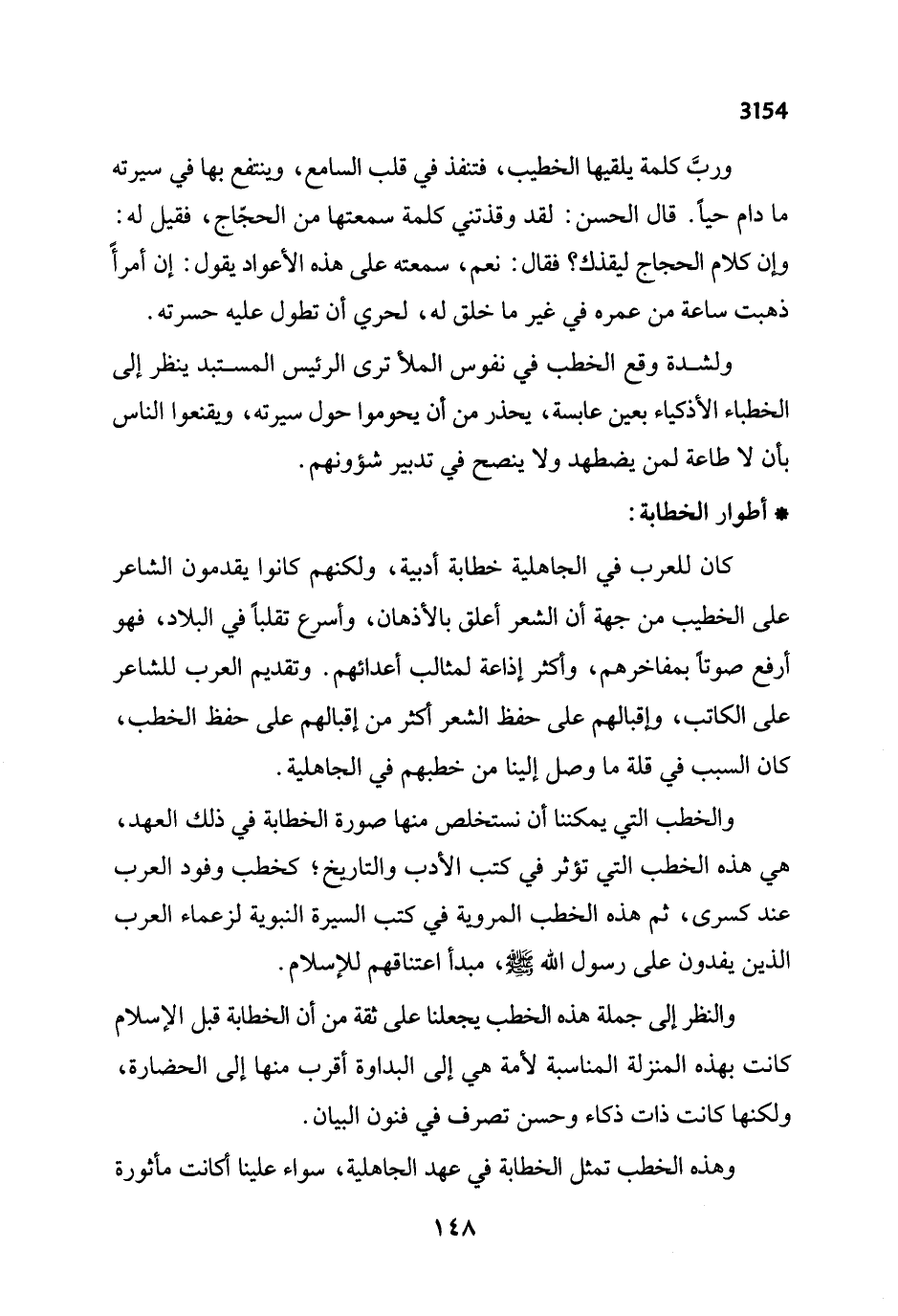 والنظر إلى جملة هذه الخطب يجعلنا على ثقة من أن الخطابة قبل كانت بهذه المنزلة المناسبة لأمة هي إلى البداوة أقرب منها إلى الحضارة، ولكنها كانت ذات ذكاء وحسن تصرف في فنون البيان.