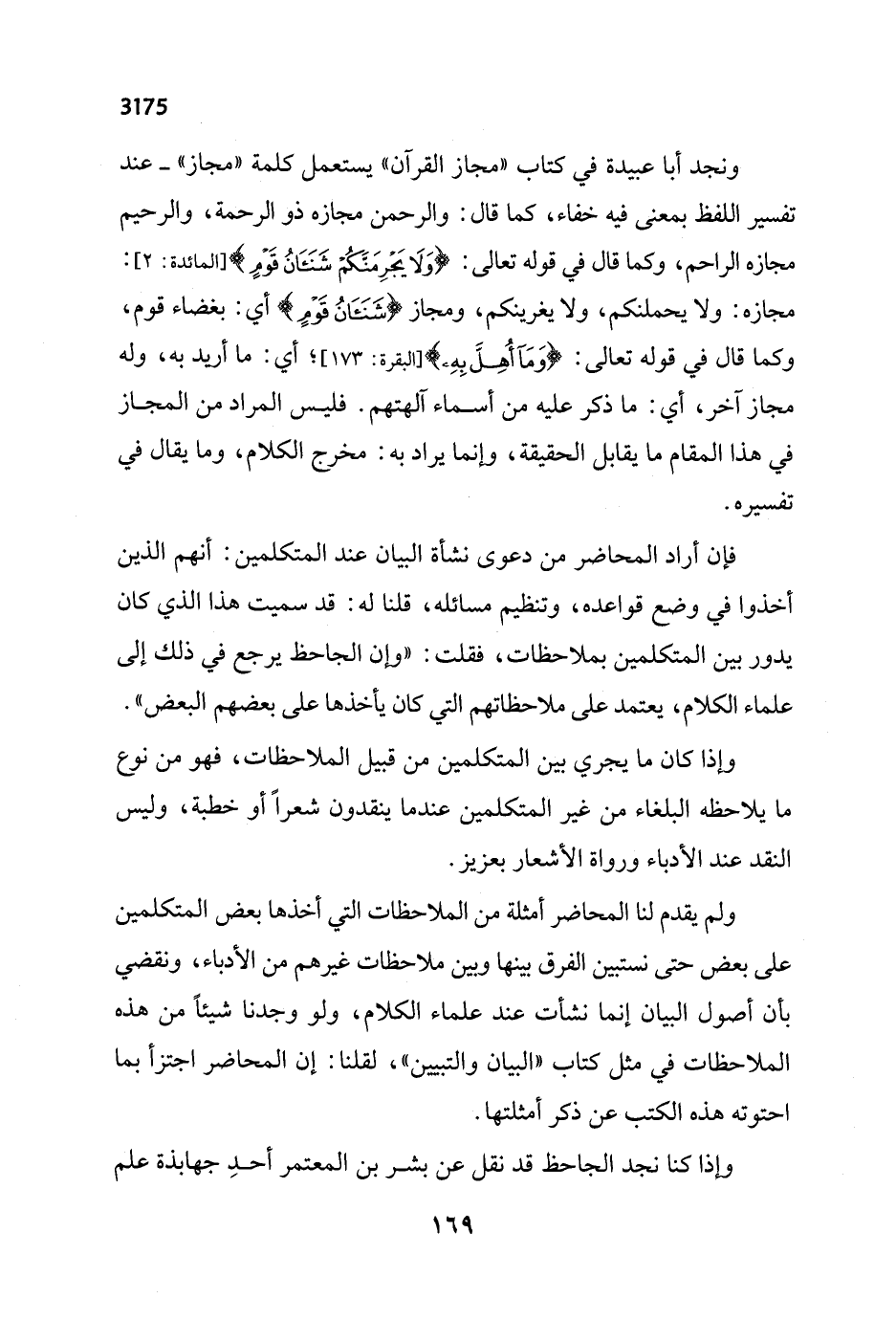 ولم يقدم لنا المحاضر أمثلة من الملاحظات التي أخذها بعض المتكلمين على بعض حتى نستبين الفرق بينها وبين ملاحظات غيرهم من الأدباء، ونقضي بأن أصول البيان إنما نشأت عند علماء الكلام، ولو وجدنا شيئاً من هذه الملاحظات في مثل كتاب "البيان والتبيين"، لقلنا: إن المحاضر اجتزأ بما احتوته هذه الكتب عن ذكر أمثلتها.