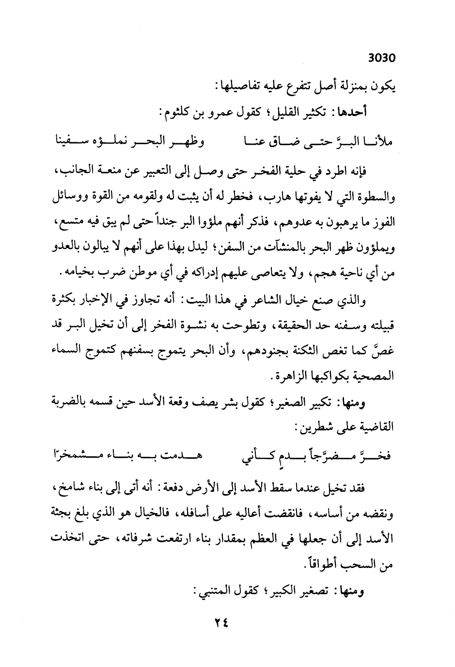 ومنها: تكبير الصغير؛ كقول بشر يصف وقعة الأسد حين قسمه بالضربة القاضية على شطرين:
