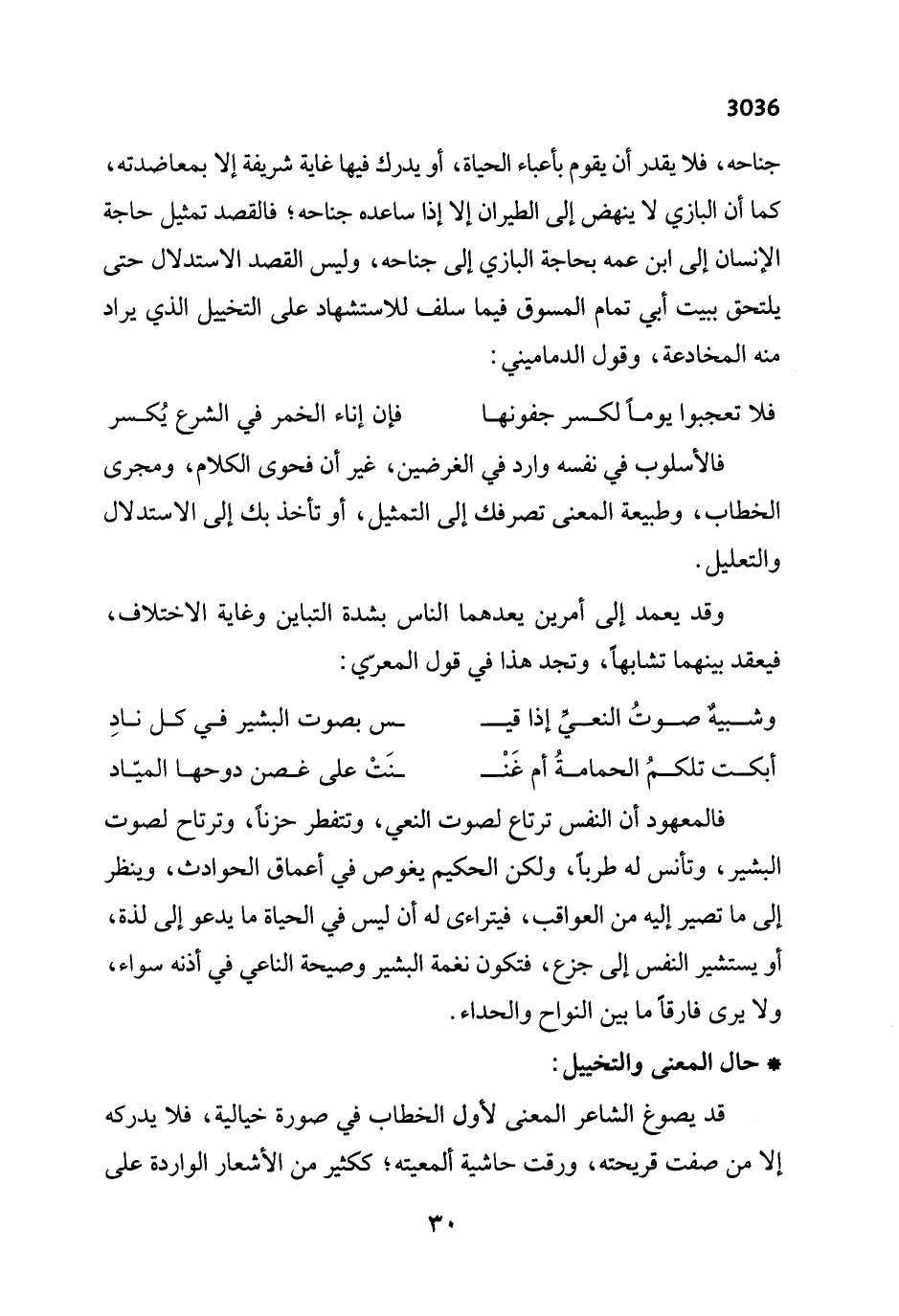 جناحه، فلا يقدر أن يقوم بأعباء الحياة، أو يدرك فيها غاية شريفة إلا بمعاضدته، كما أن البازي لا ينهض إلى الطيران إلا إذا ساعده جناحه؛ فالقصد تمثيل حاجة الإنسان إلى ابن عمه بحاجة البازي إلى جناحه، وليس القصد الاستدلال حتى يلتحق ببيت أبي تمام المسوق فيما سلف للاستشهاد على التخييل الذي يراد منه المخادعة، وقول الدماميني:
