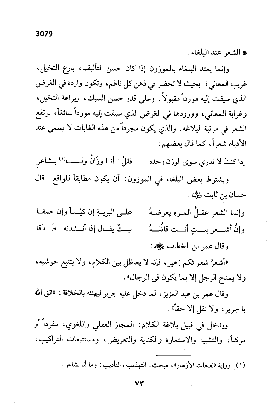 وإنما يعتد البلغاء بالموزون إذا كان حسن التأليف، بارع التخيل، غريب المعاني؛ بحيث لا تحضر في ذهن كل ناظم، وتكون واردة في الغرض الذي سيقت إليه مورداً مقبولاً. وعلى قدر حسن السبك، وبراعة التخيل، وغرابة المعاني، وورودها في الغرض الذي سيقت إليه مورداً سائغاً، يرتفع الشعر في مرتبة البلاغة. والذي يكون مجرداً من هذه الغايات لا يسمى عند الأدباء شعراً، كما قال بعضهم: