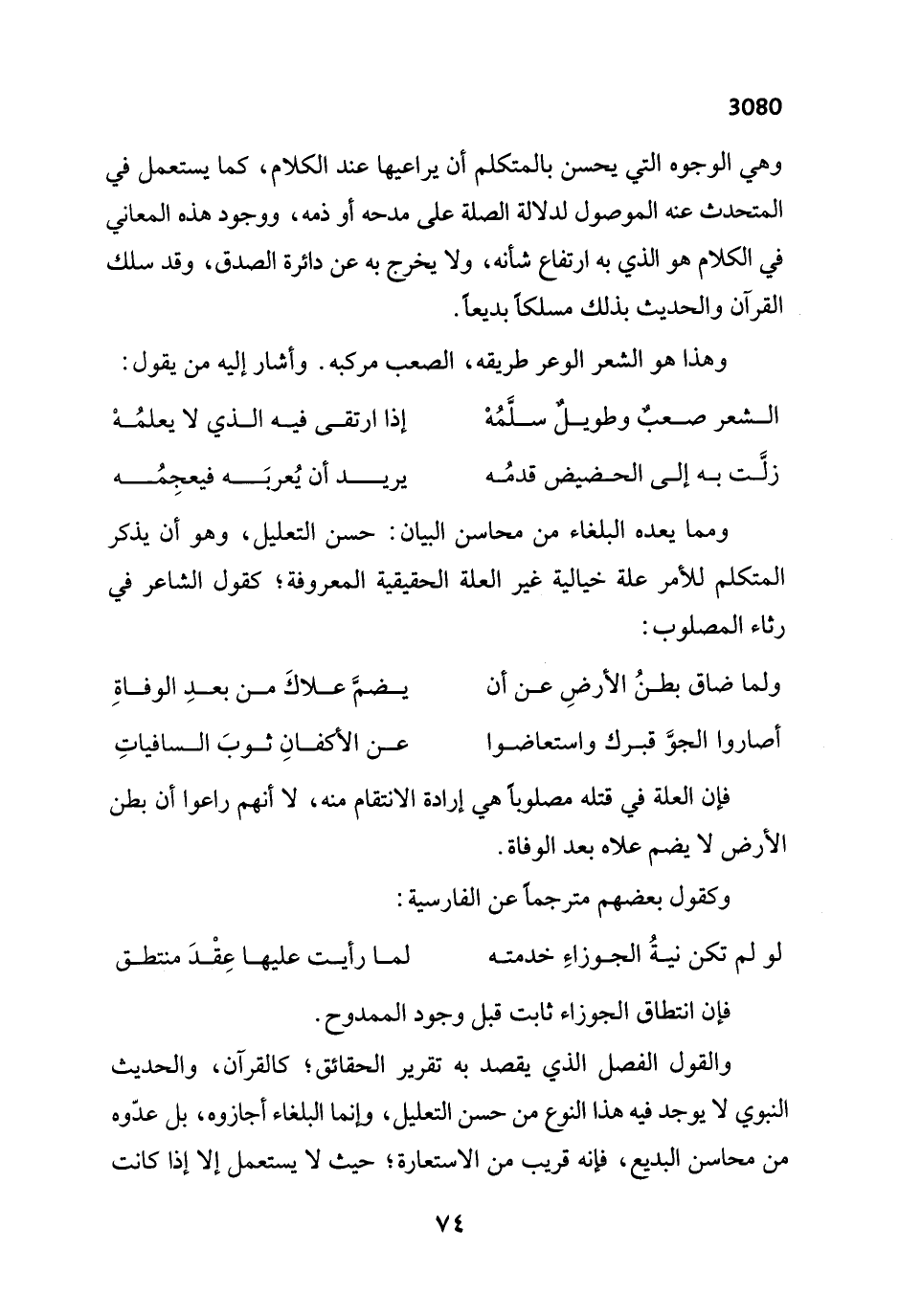 والقول الفصل الذي يقصد به تقرير الحقائق؛ كالقرآن، والحديث النبوي لا يوجد فيه هذا النوع من حسن التعليل، وإنما البلغاء أجازوه، بل عدّوه من محاسن البديع، فإنه قريب من الاستعارة؛ حيث لا يستعمل إلا إذا كانت