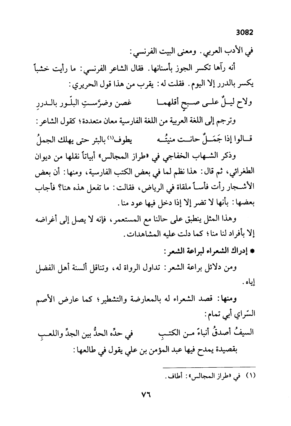 في الأدب العربي. ومعنى البيت الفرنسي: