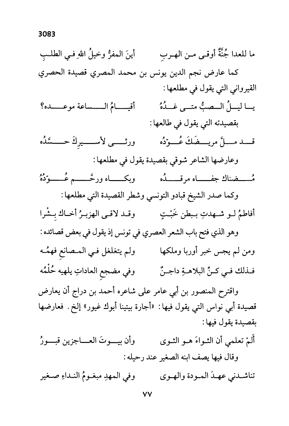 كما عارض نجم الدين يونس بن محمد المصري قصيدة الحصري القيرواني التي يقول في مطلعها: