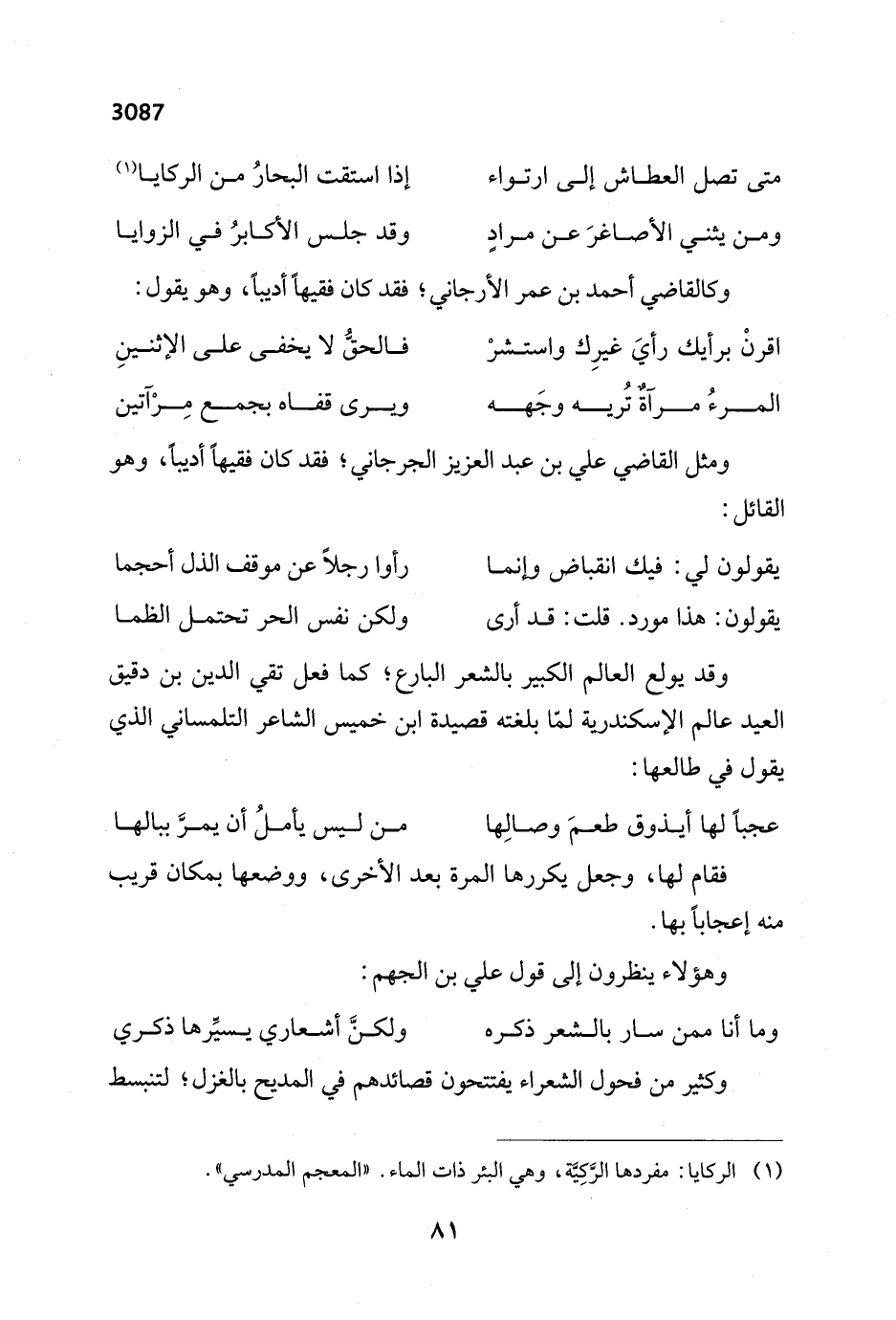 متى تصل العطاش إلى ارتواء ... إذا استقت البحارُ من الركايا (¬1)