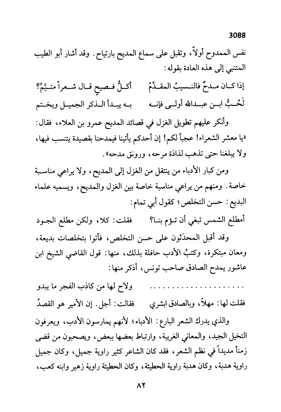 نفس الممدوح أولاً، وتقبل على سماع المديح بارتياح. وقد أشار أبو الطيب المتنبي إلى هذه العادة بقوله: