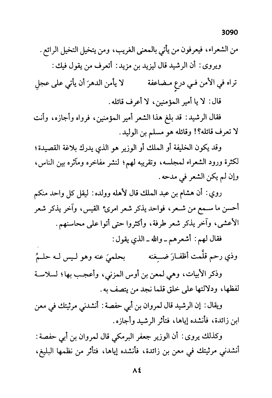 ويقال: إن الرشيد قال لمروان بن أبي حفصة: أنشدني مرثيتك في معن ابن زائدة، فأنشده إياها، فتأثر الرشيد وأجازه.