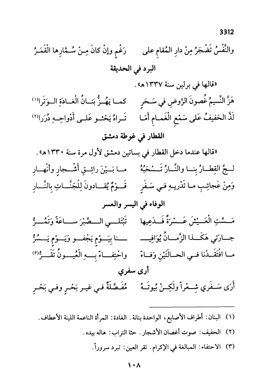 " قالها عندما دخل القطار في بساتين دمشق لأول مرة سنة 1330 هـ ".