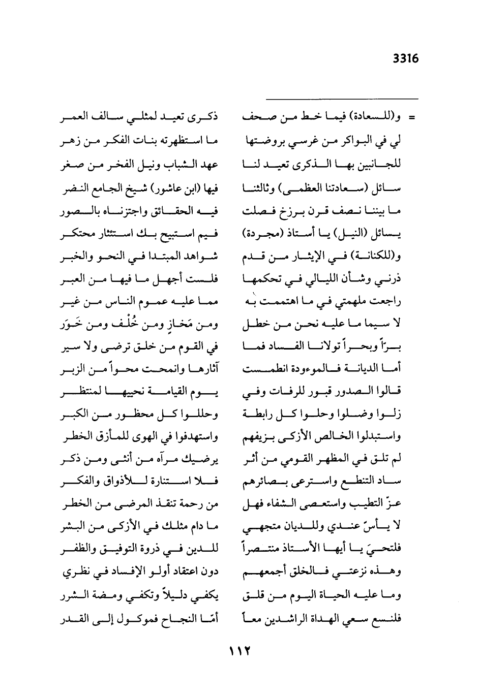 سائل (سعادتنا العظمى) وثالثنا ... فيها (ابن عاشور) شيخ الجامع النضر