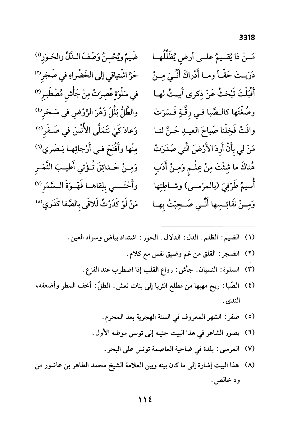 (¬8) هذا البيت إشارة إلى ما كان بينه وبين العلامة الشيخ محمد الطاهر بن عاشور من ود خالص.