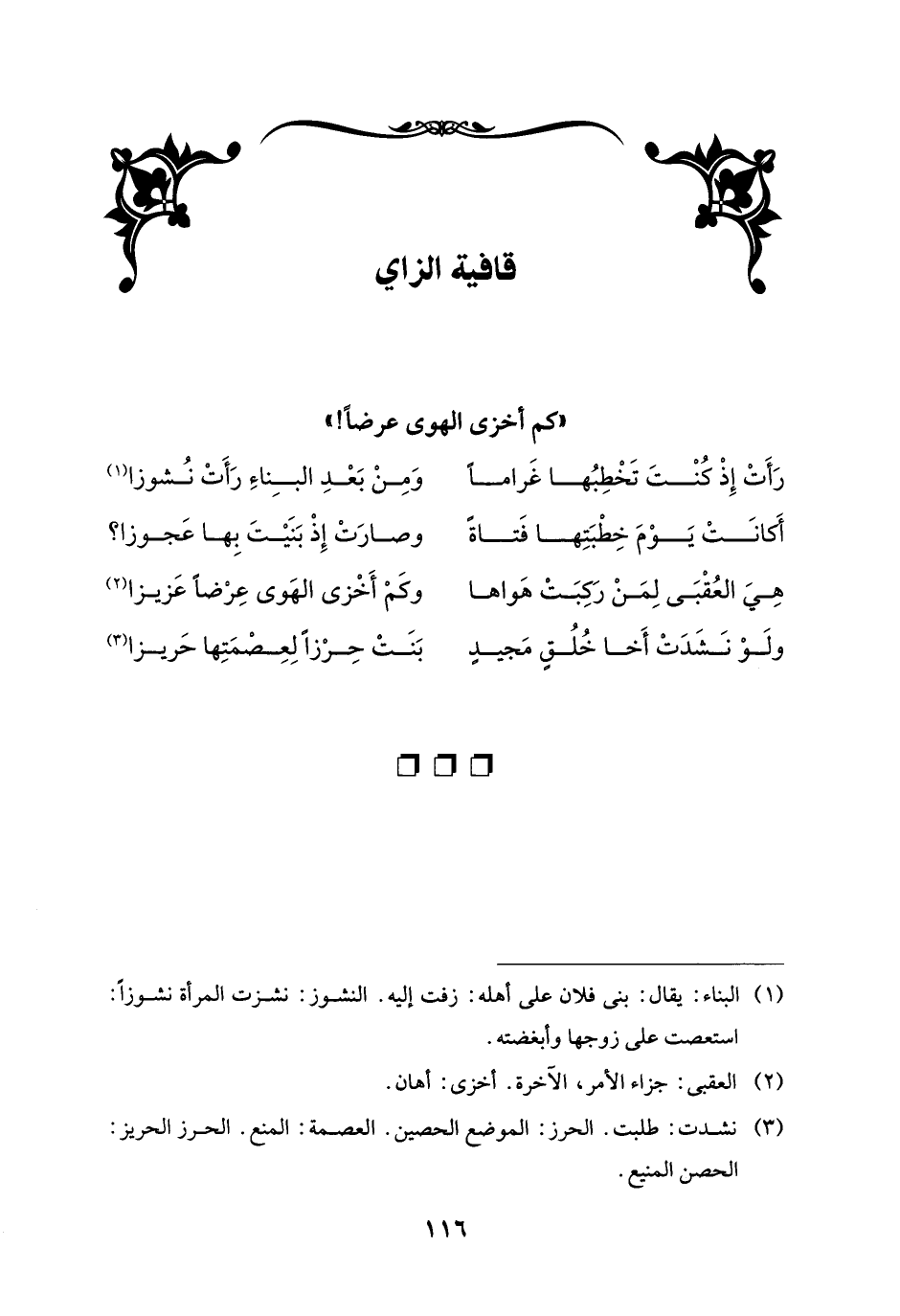 رَأَتْ إِذْ كُنْتَ تَخْطِبُها غَراماً ... وَمِنْ بَعْدِ البِناءِ رَأَتْ نُشوزا (¬1)