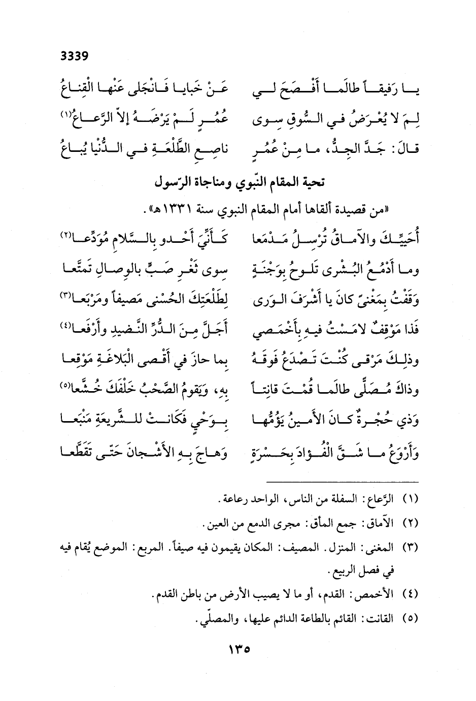 " من قصيدة ألقاها أمام المقام النبوي سنة 1331 هـ ".