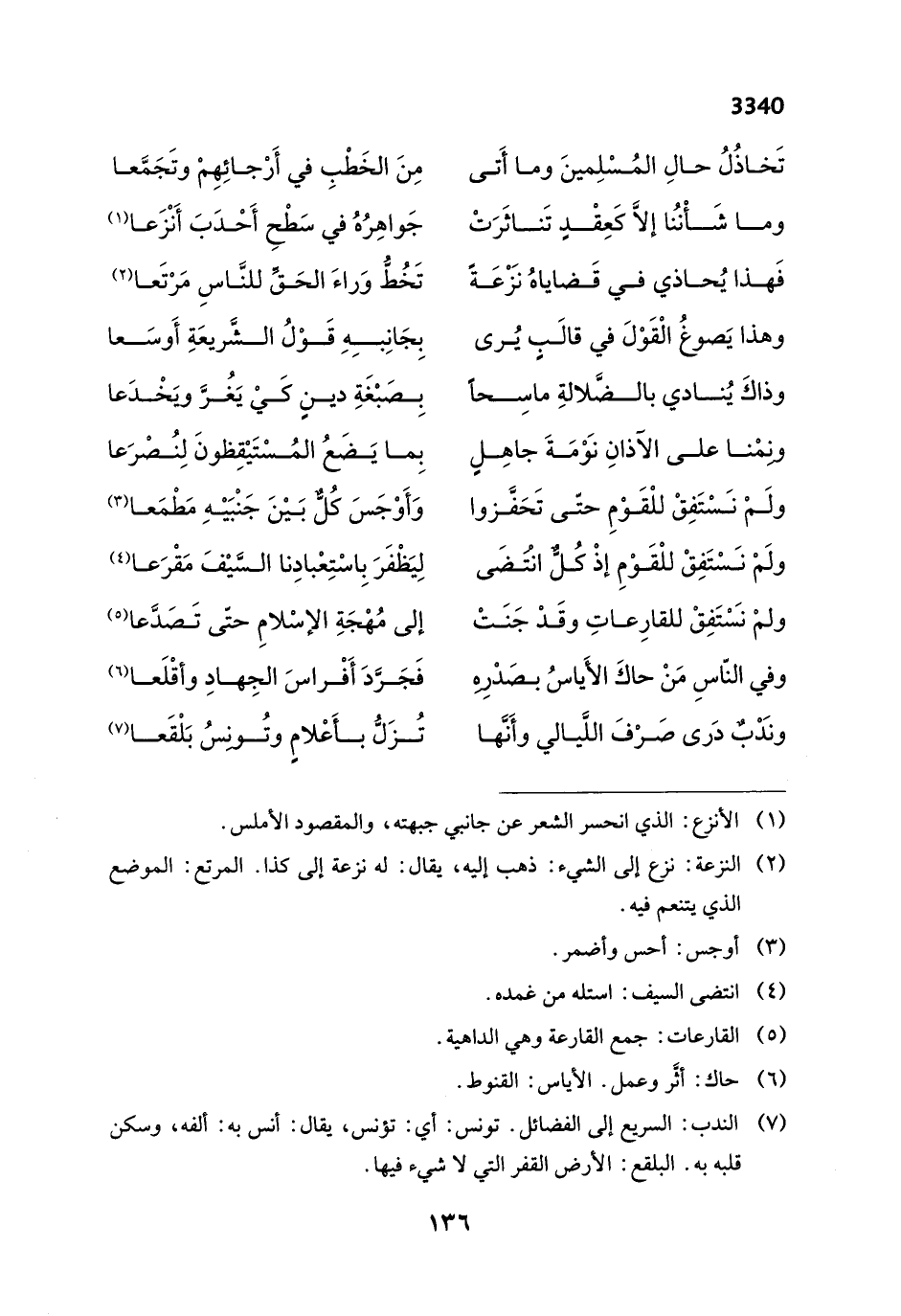 (¬7) الندب: السريع إلى الفضائل. تونس: أي: تؤنس، يقال: أنس به: ألفه، وسكن قلبه به. البلقع: الأرض القفر التي لا شيء فيها.