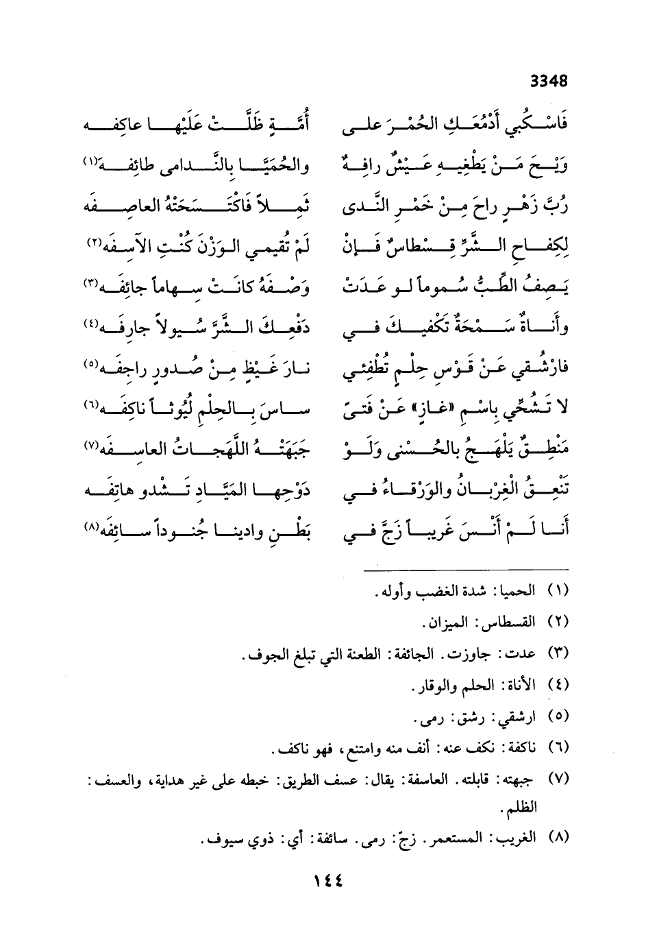 وَيْحَ مَنْ يَطْغِيهِ عَيْشٌ رافِهٌ ... والحُمَيَّا بِالنَّدامى طائِفهَ (¬1)