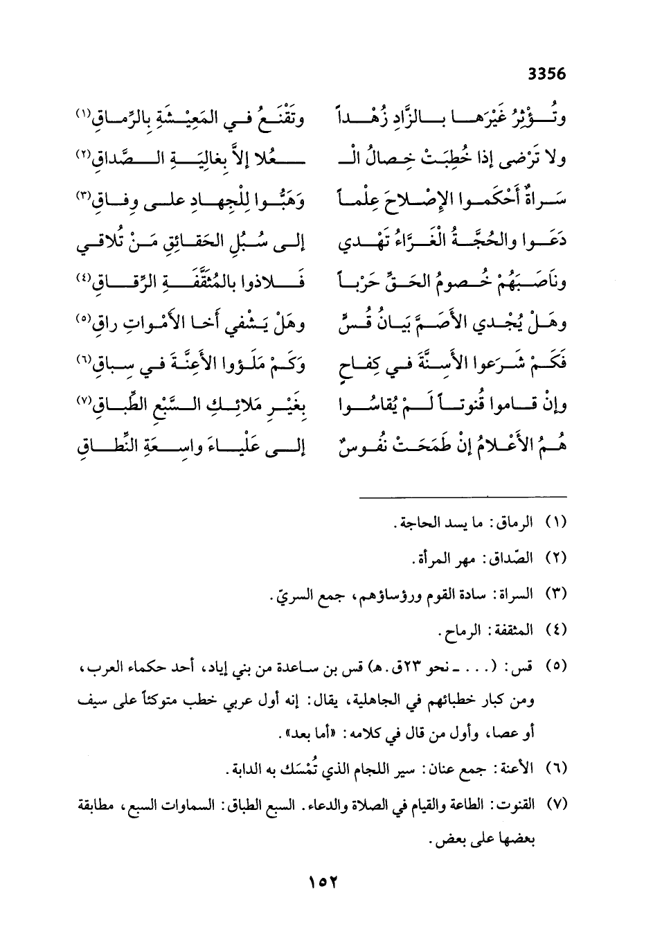 وهَلْ يُجْدي الأَصَمَّ بَيانُ قُسٍّ ... وهَلْ يَشْفي أَخا الأَمْواتِ راقِ (¬5)