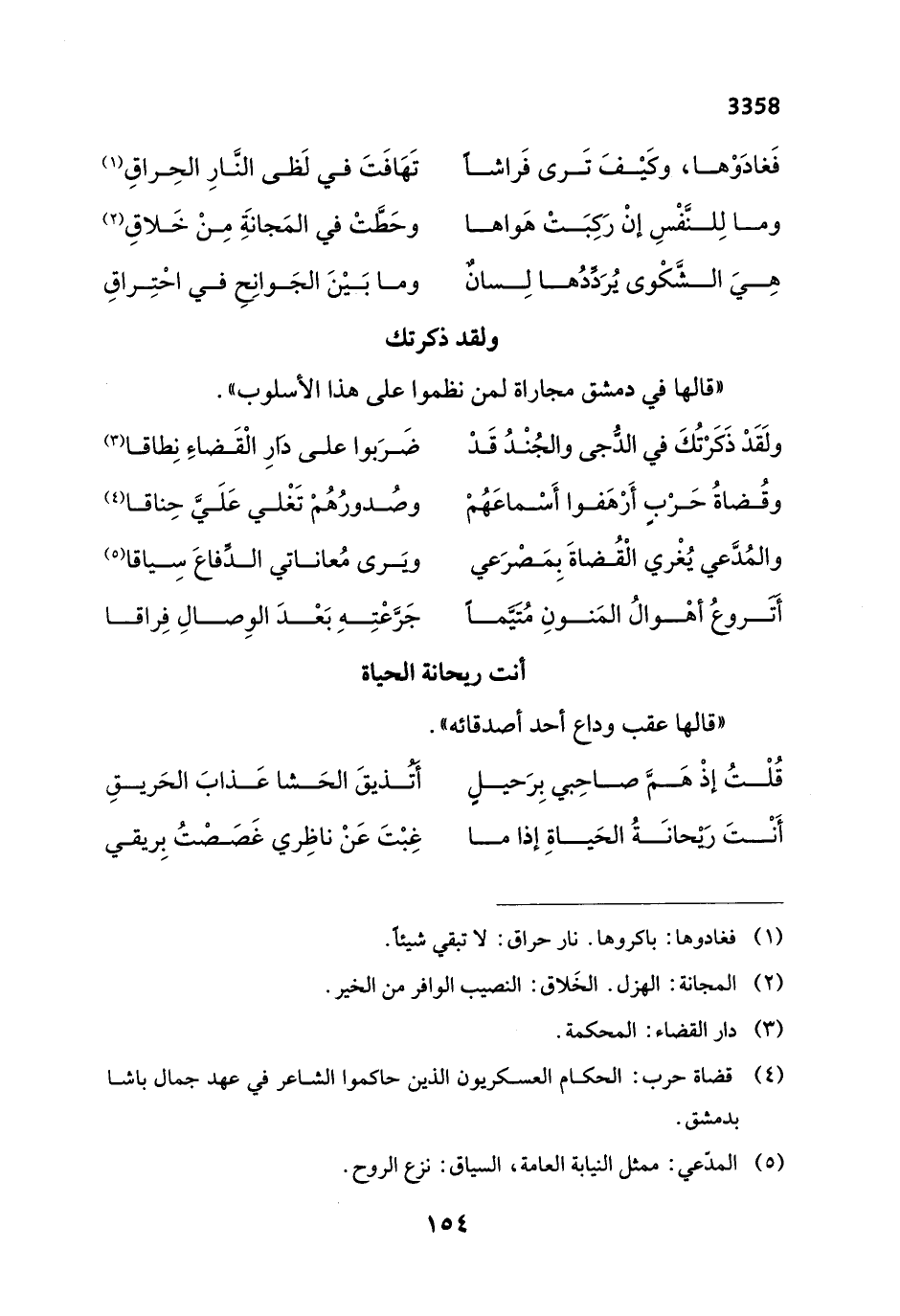(¬4) قضاة حرب: الحكام العسكريون الذين حاكموا الشاعر في عهد جمال باشا بدمشق.