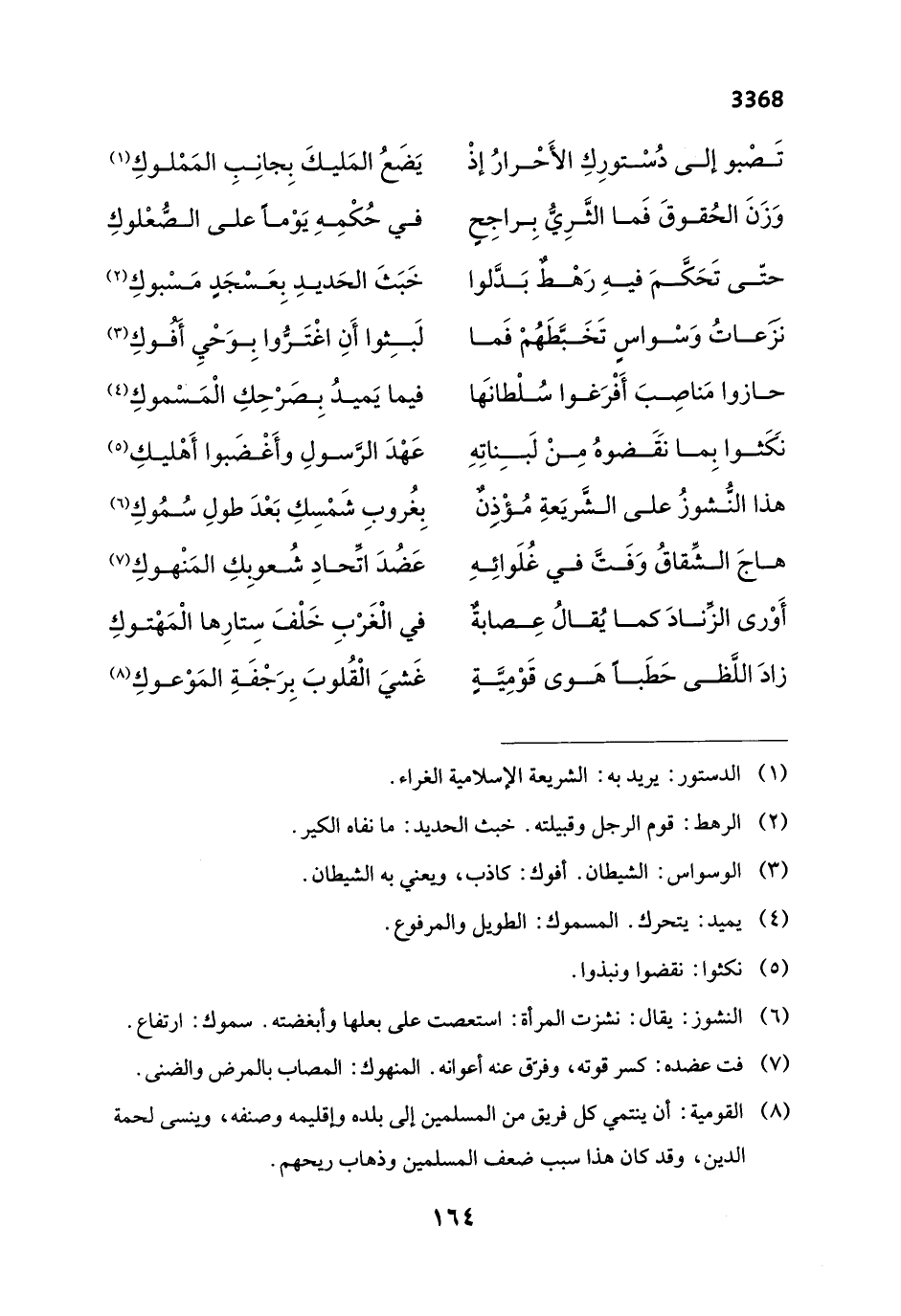 هذا النُّشوزُ على الشَّريَعةِ مُؤْذِنٌ ... بِغُروبِ شَمْسِكِ بَعْدَ طولِ سُمُوكِ (¬6)