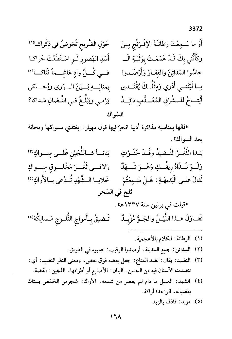 (¬4) الشهد: العسل ما دام لم يعصر من شمعه. الأراك: شجر من الحَمْض يستاك بقضبانه، الواحدة أراكة.