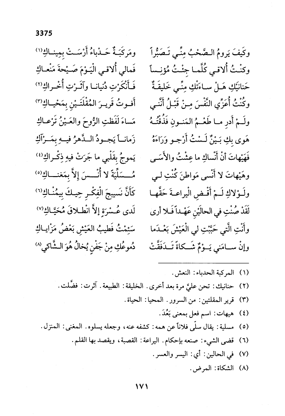 (¬2) حنانيك: تحن عليَّ مرة بعد أخرى. الخليقة: الطبيعة. آثرت: فضَّلت.