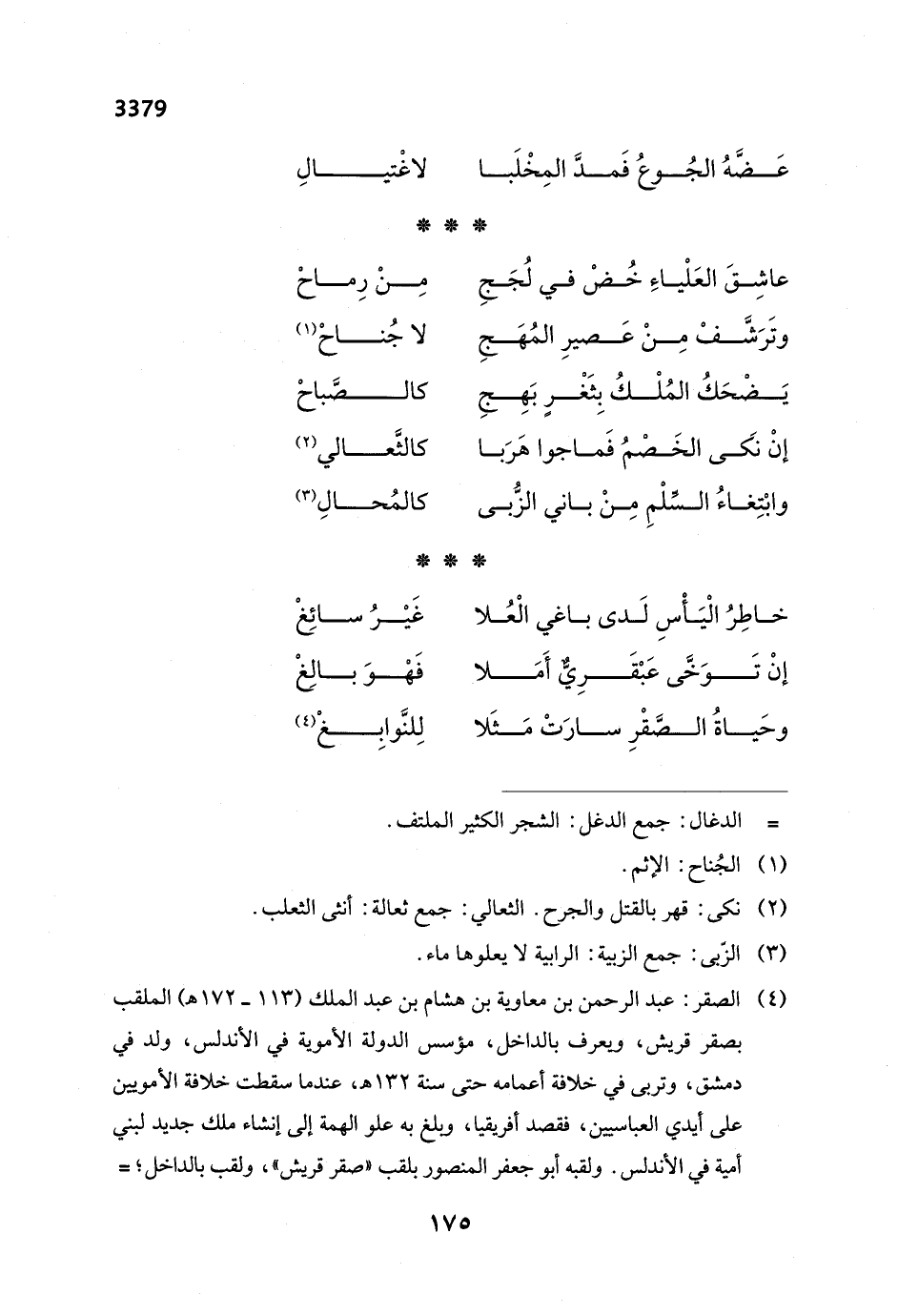 وحَياةُ الصَّقْرِ سارَتْ مَثَلا ... لِلنَّوابِغْ (¬4)