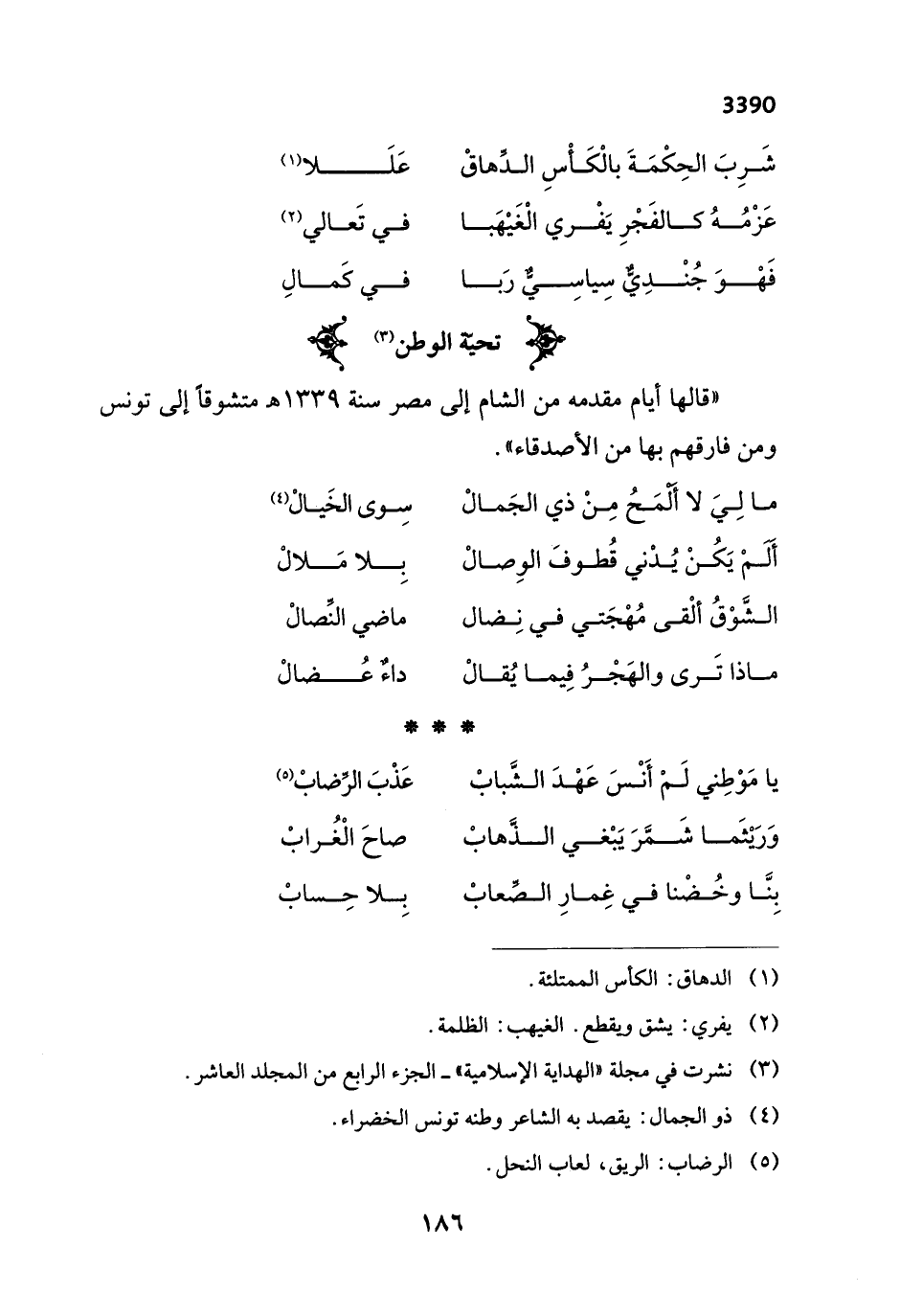 (¬4) ذو الجمال: يقصد به الشاعر وطنه تونس الخضراء.