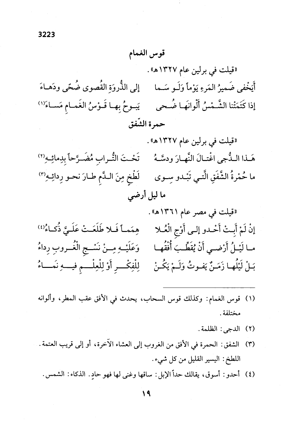 (¬4) أحدو: أسوق، يقالك حداً الإبل: ساقها وغنى لها فهو حادٍ. الذكاء: الشمس.