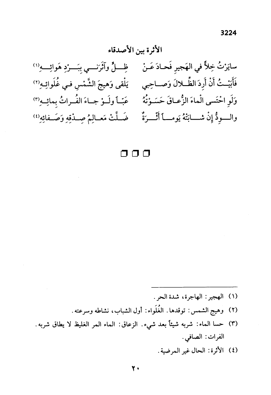 سايَرْتُ خِلَّا في الهَجيرِ فَحادَ عَنْ ... ظِلَّ وآثَرَني بِبَرْدِ هَوائِهِ (¬1)