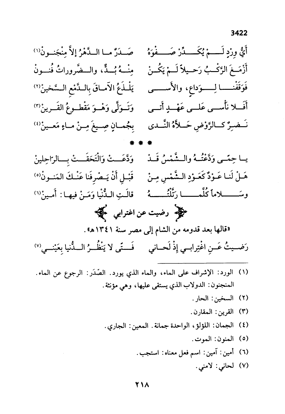 " قالها بعد قدومه من الشام إلى مصر سنة 1341 هـ ".