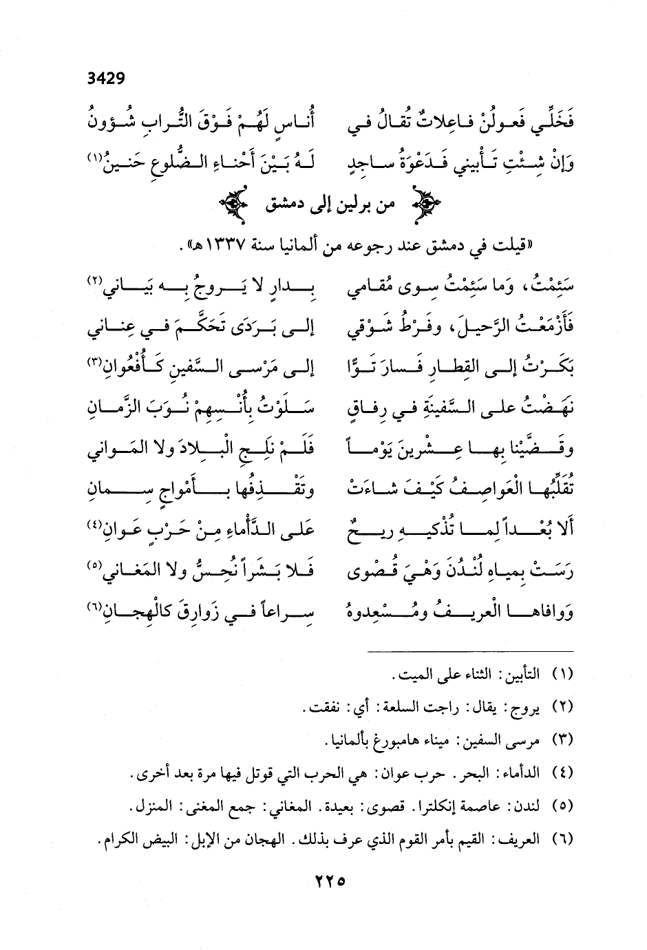 " قيلت في دمشق عند رجوعه من ألمانيا سنة 1337 هـ ".