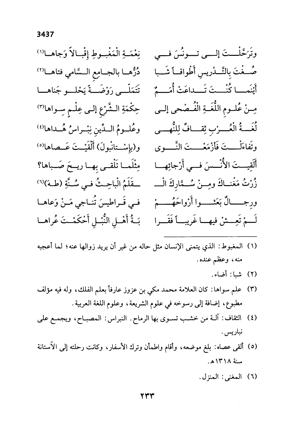 مِنْ عُلومِ اللُّغَةِ الْفُصْحى إلى ... حِكْمَةِ الشَّرْعِ إلى عِلْمٍ سِواها (¬3)