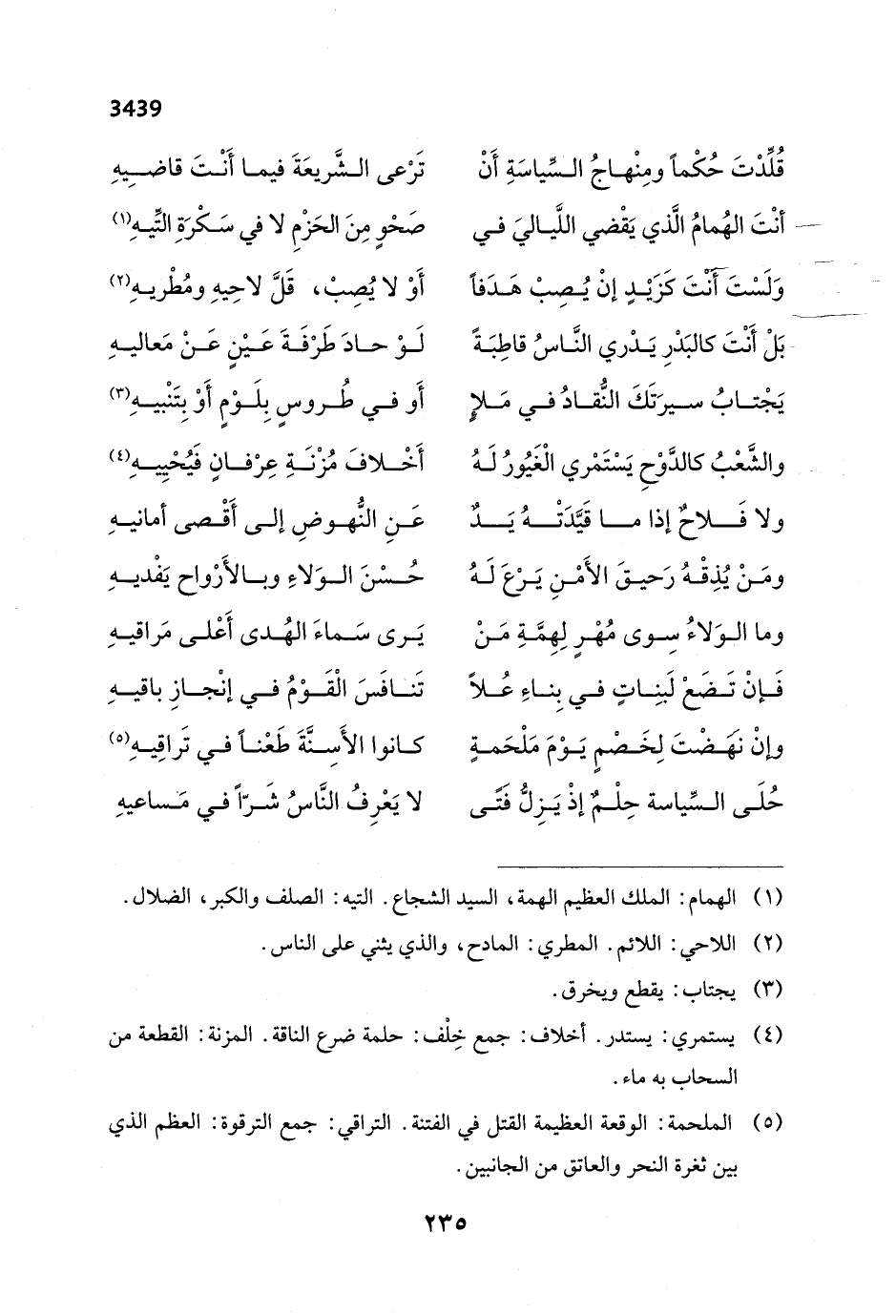 أنْتَ الهُمامُ الَّذي يَقْضي اللَّياليَ في ... صَحْوٍ مِنَ الحَزْمِ لا في سَكْرَةِ التِّيهِ (¬1)