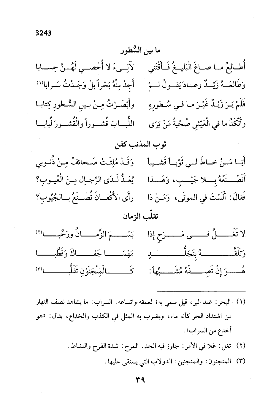وَطَالعَهُ زَيْدٌ وعادَ يَقولُ لمْ ... أَجِدْ مِنْهُ بَحْراً بلْ وَجَدْتُ سَرابا (¬1)