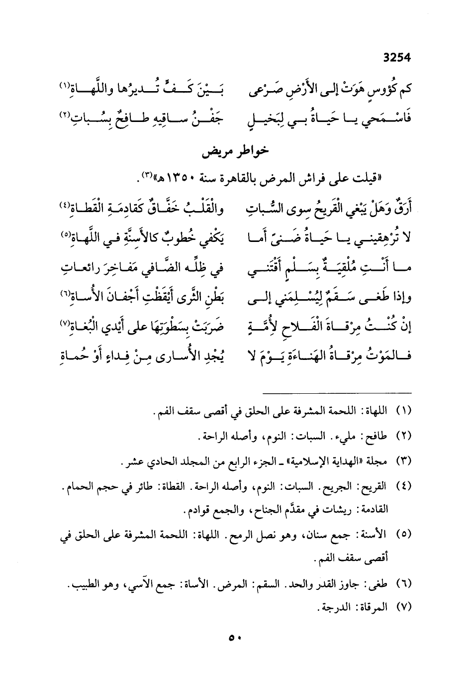 " قيلت على فراش المرض بالقاهرة سنة 1350 هـ " (¬3).
