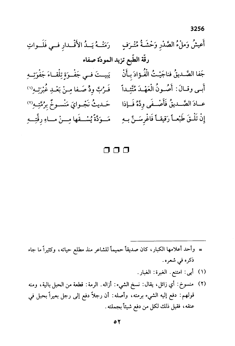 عادَ الصَّديقُ فَأَصْفَى وِدَّهُ فَإذا ... حَديثُ نَجْوايَ مَنْسوخٌ بِرُمَّتِهِ (¬2)
