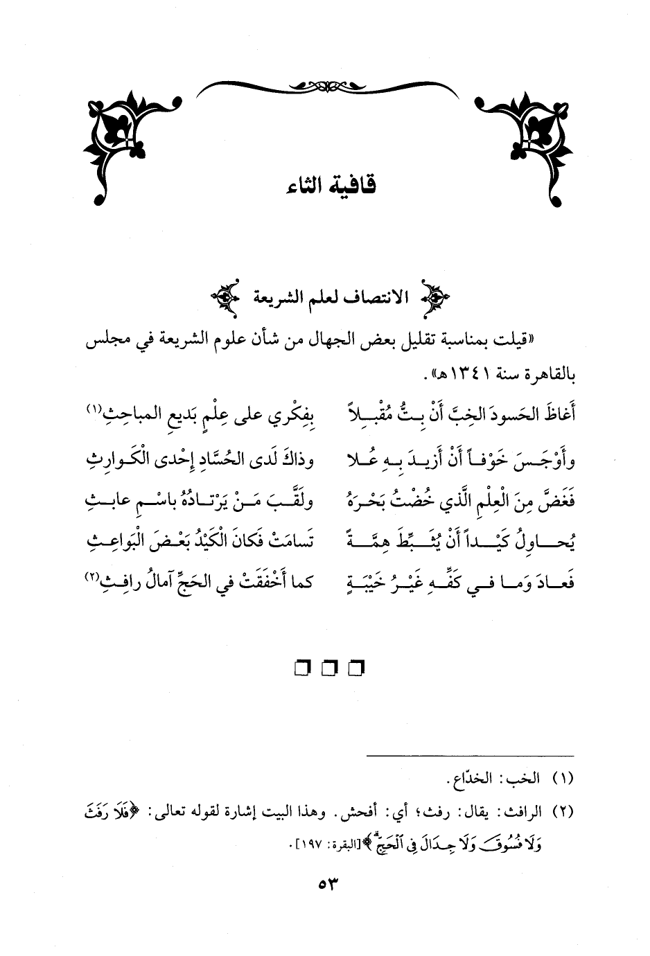 " قيلت بمناسبة تقليل بعض الجهال من شأن علوم الشريعة في مجلس بالقاهرة سنة 1341 هـ).