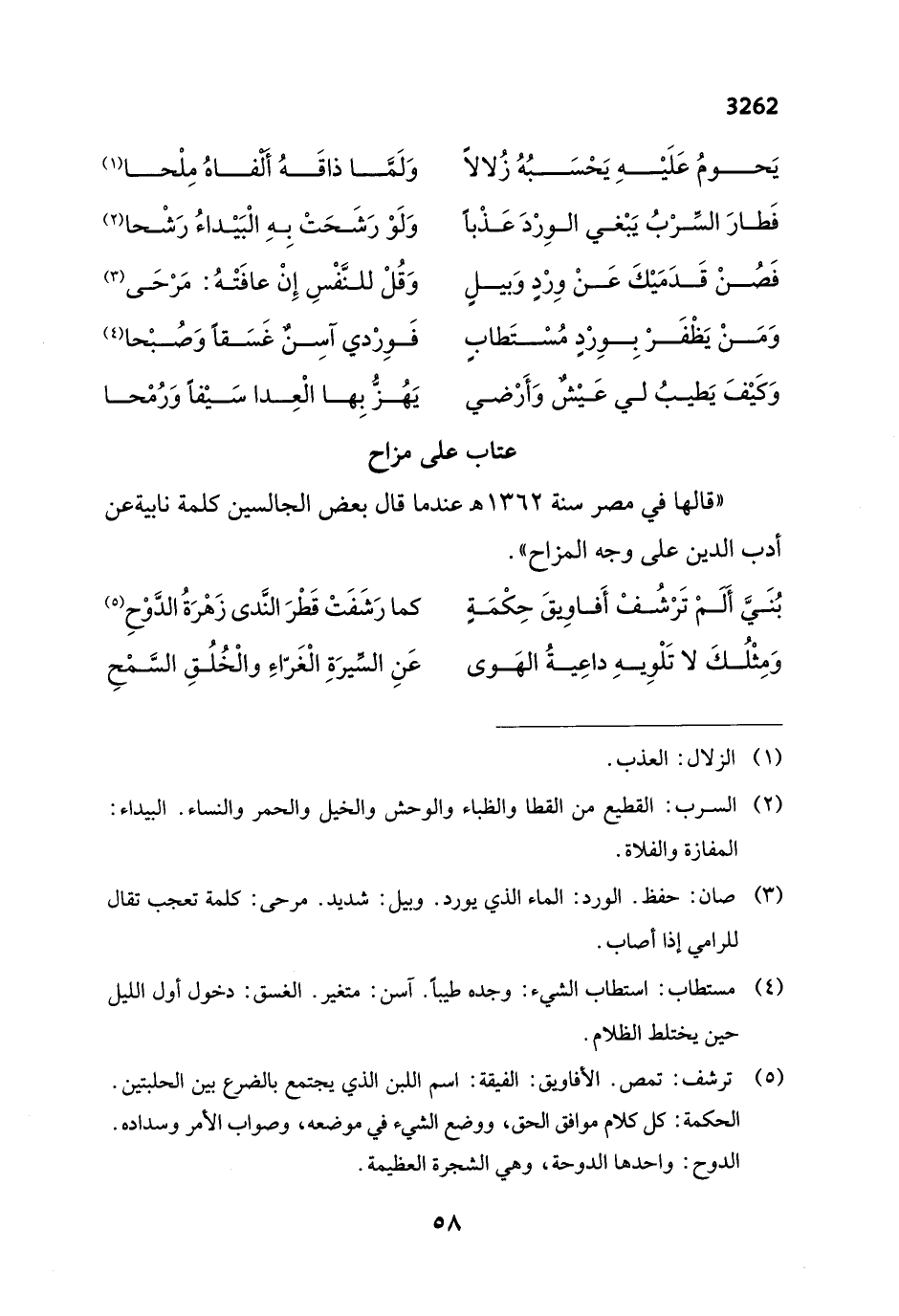 بُنَيَّ ألمْ تَرْشُفْ أَفاوِيقَ حِكْمَةٍ ... كما رَشَفَتْ قَطْرَ النَدى زَهْرَةُ الدَّوْحِ (¬5)