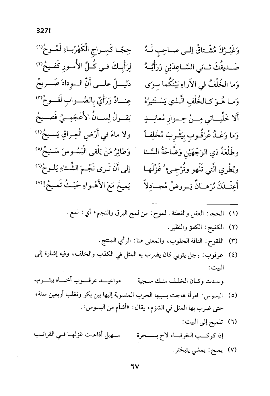 وَغَيْرُكَ مُشْتاق إلى صاحِبٍ لَهُ ... حِجا كَسِراجِ الْكَهْرُباءِ لَمُوح (¬1)