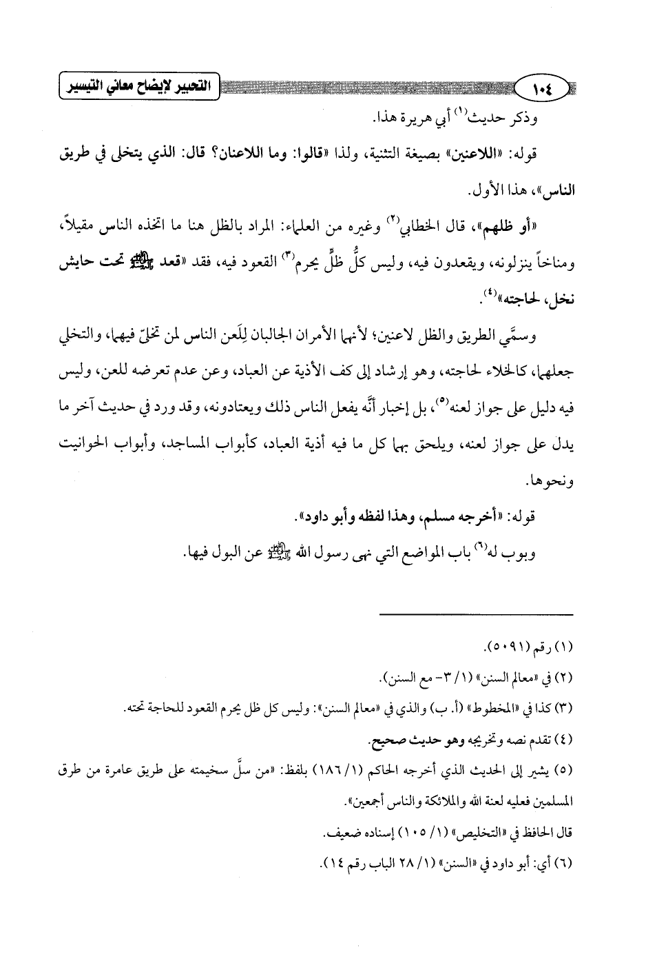 (¬5) يشير إلى الحديث الذي أخرجه الحاكم (1/ 186) بلفظ: "من سلَّ سخيمته على طريق عامرة من طرق المسلمين فعليه لعنة الله والملائكة والناس أجمعين".