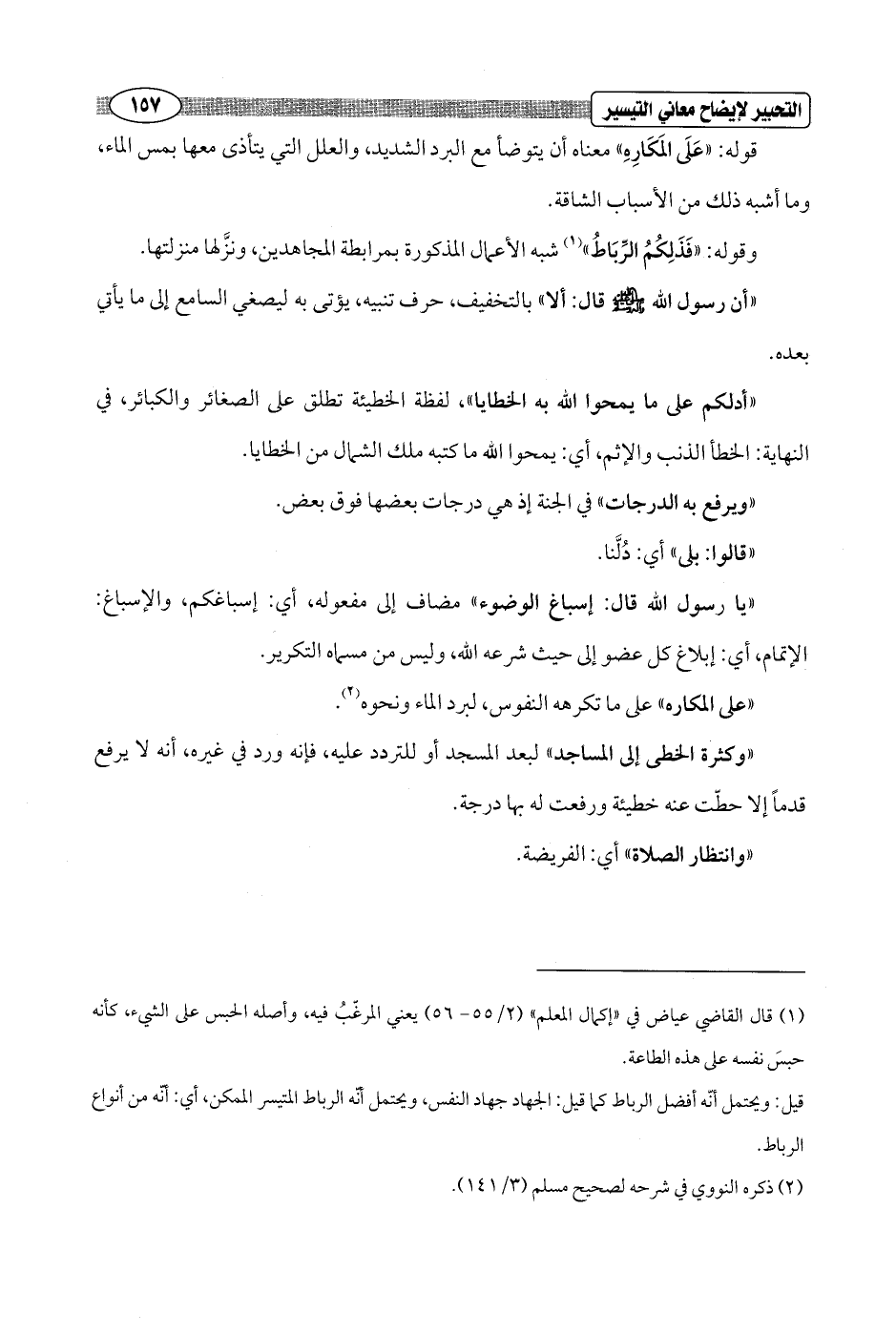 وقوله: "فَذَلِكُمُ الرِّبَاطُ" (¬1) شبه الأعمال المذكورة بمرابطة المجاهدين، ونزَّلها منزلتها.