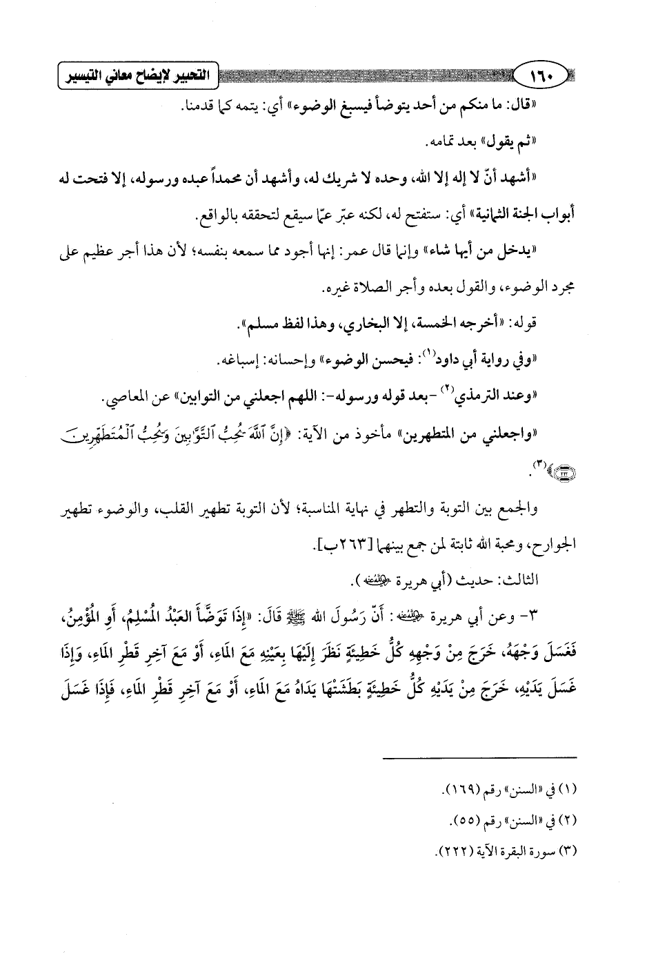 "واجعلني من المتطهرين" مأخوذ من الآية: {إِنَّ اللَّهَ يُحِبُّ التَّوَّابِينَ وَيُحِبُّ الْمُتَطَهِّرِينَ (222)} (¬3).