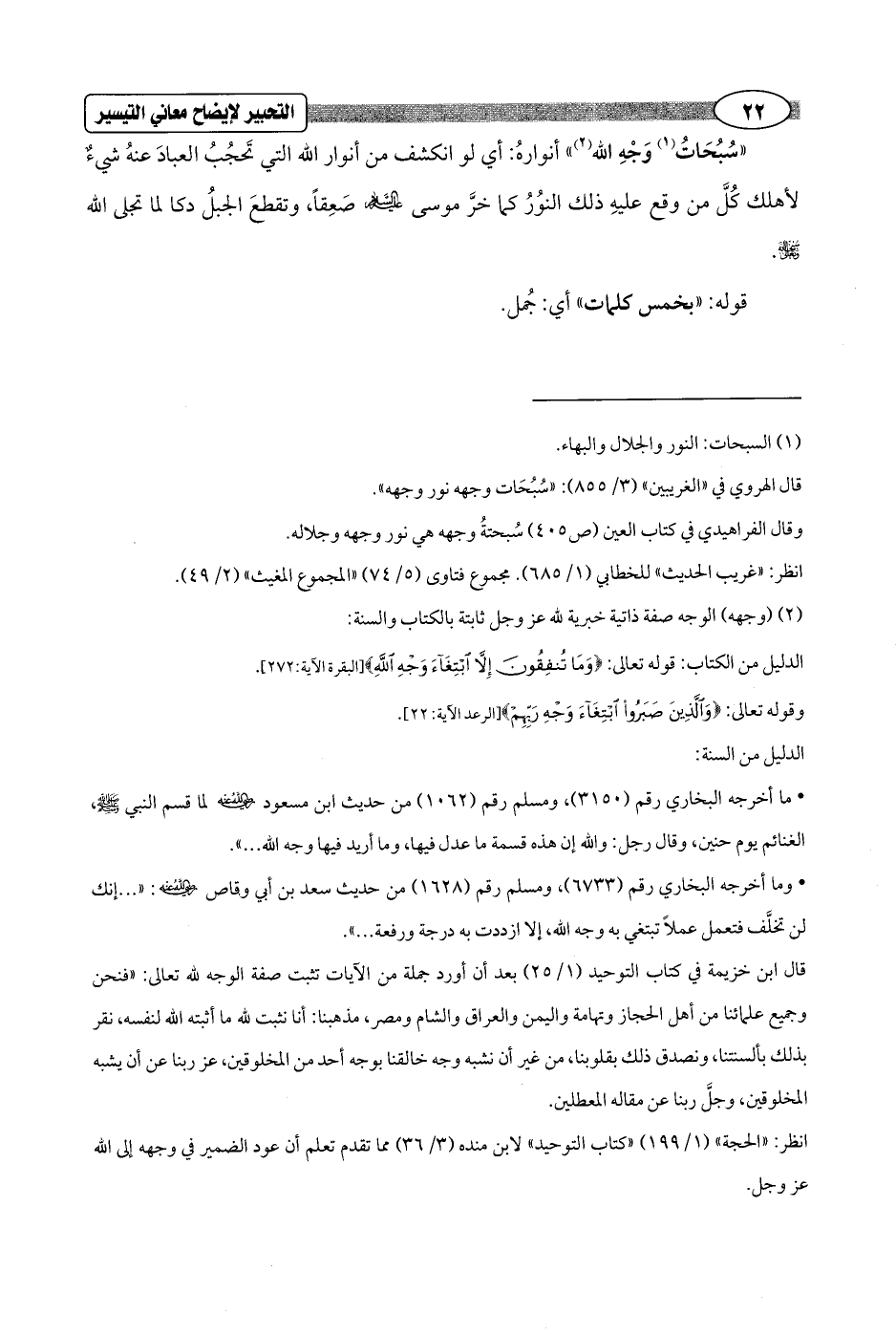 (¬2) (وجهه) الوجه صفة ذاتية خبرية لله عز وجل ثابتة بالكتاب والسنة: