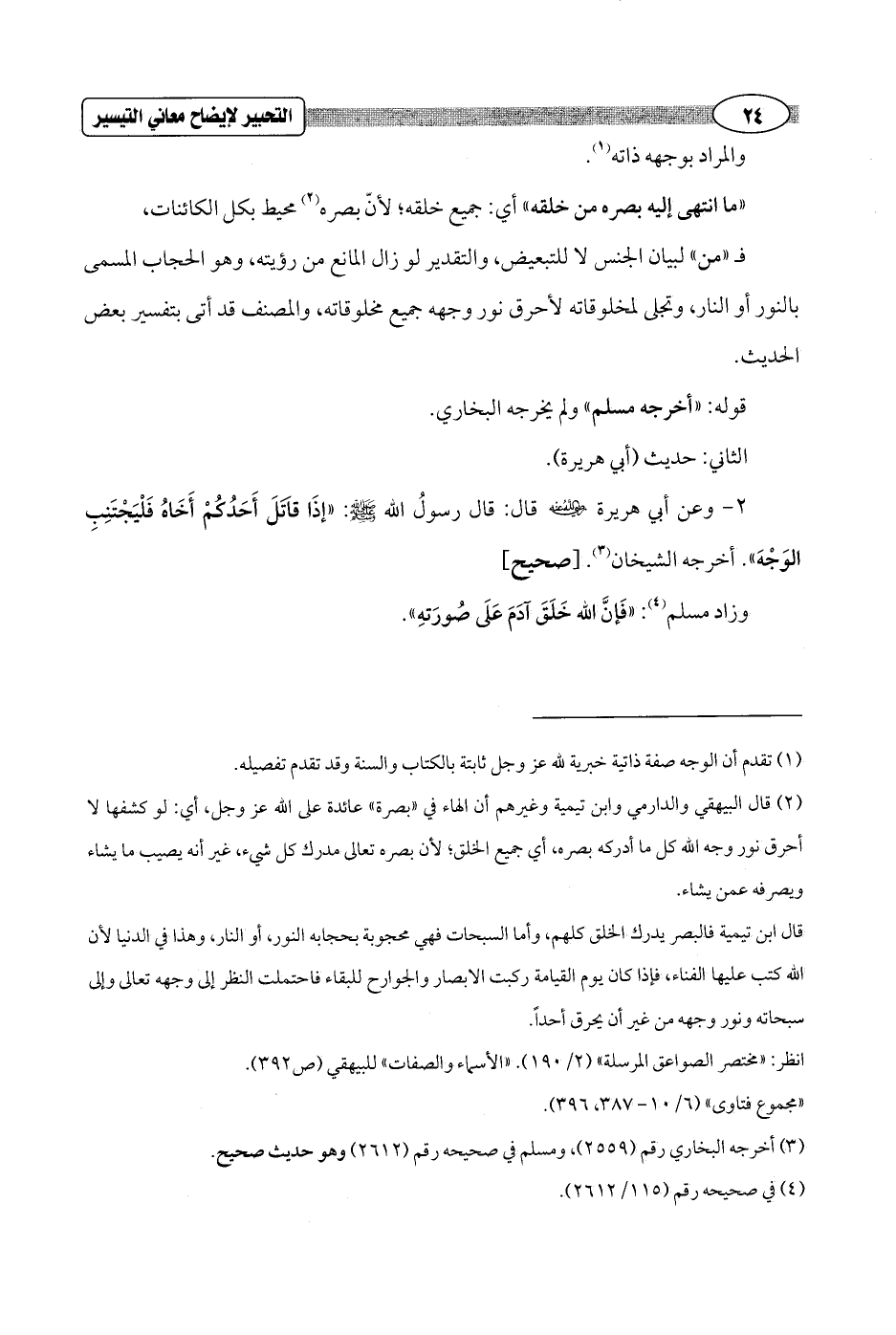 (¬1) تقدم أن الوجه صفة ذاتية خبرية لله عز وجل ثابتة بالكتاب والسنة وقد تقدم تفصيله.