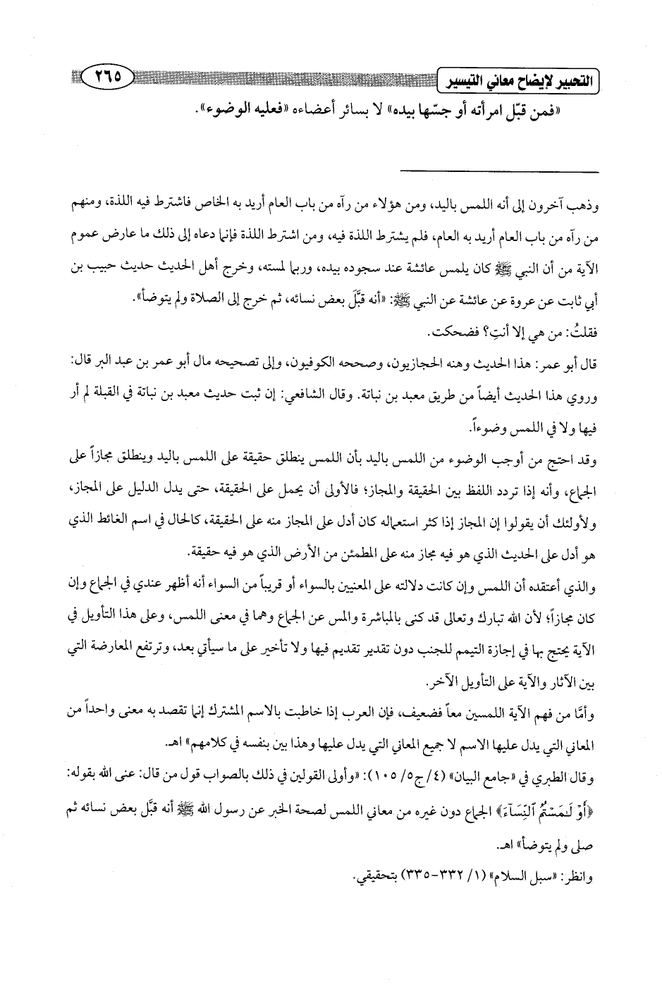 وانظر: "سبل السلام" (1/ 332 - 335) بتحقيقي.
