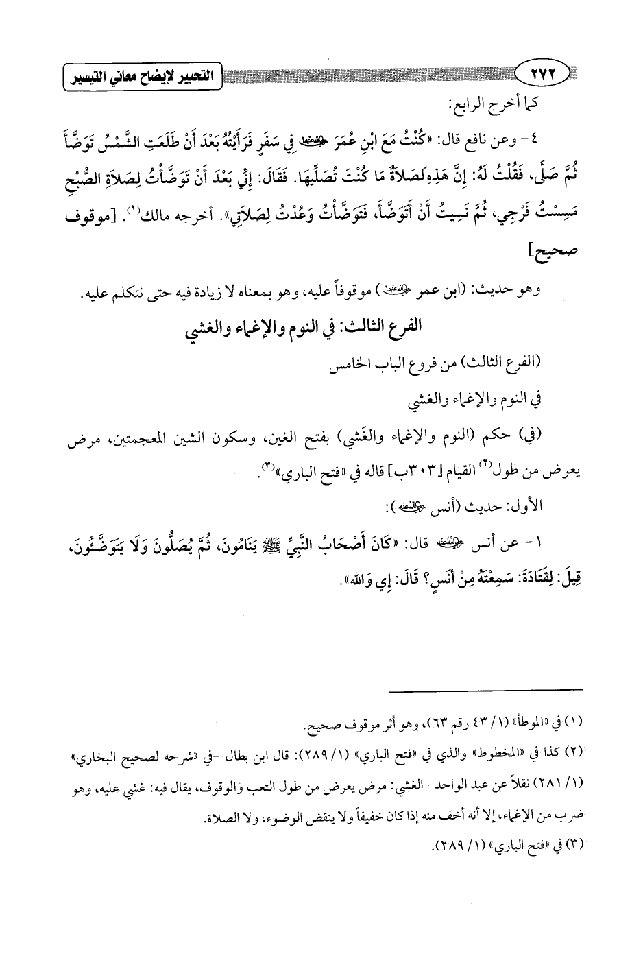 1 - عن أنس - رضي الله عنه - قال: "كَانَ أَصْحَابُ النَّبِيِّ - صلى الله عليه وسلم - يَنَامُونَ، ثُمَّ يُصَلُّونَ وَلَا يَتَوَضَّئُونَ، قِيلَ: لِقَتَادَةَ: سَمِعْتَهُ مِنْ أنَسٍ؟ قَالَ: إِي وَالله".