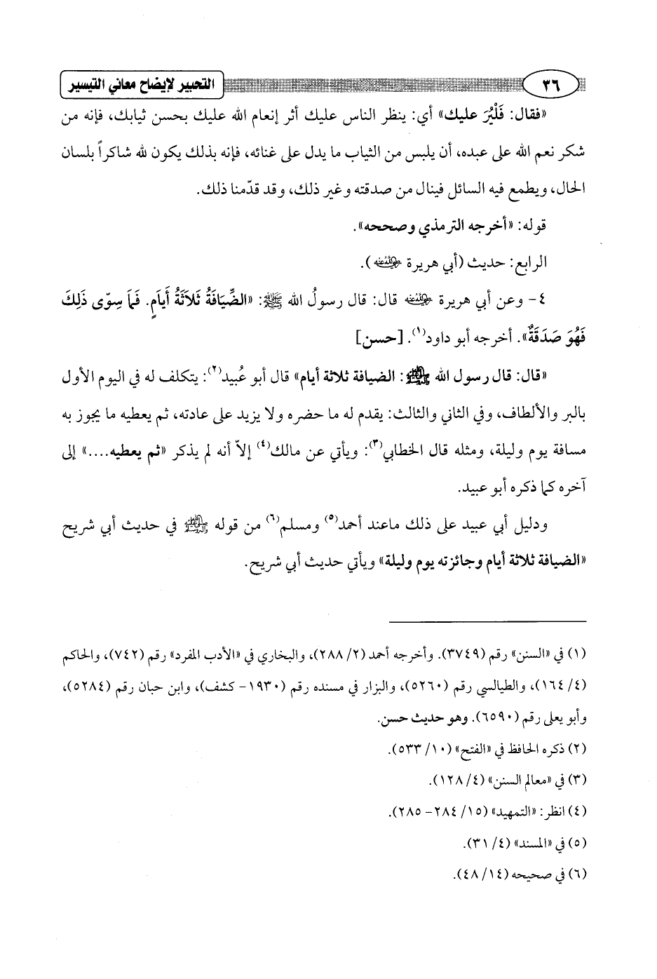 ودليل أبي عبيد على ذلك ما عند أحمد (¬5) ومسلم (¬6) من قوله - صلى الله عليه وسلم - في حديث أبي شريح "الضيافة ثلاثة أيام وجائزته يوم وليلة" ويأتي حديث أبي شريح.