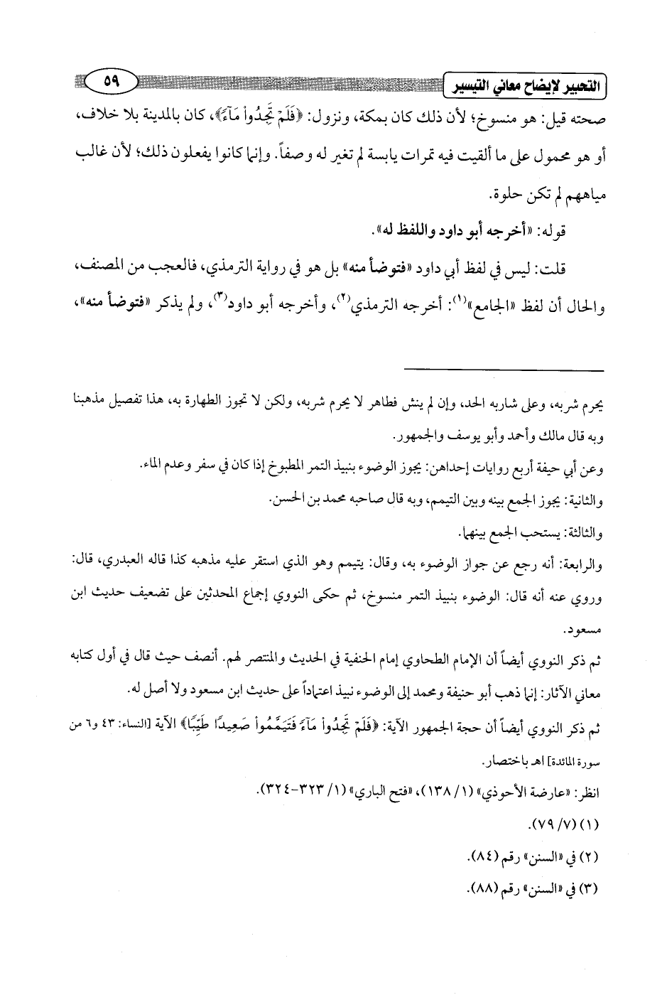ثم ذكر النووي أيضاً أن حجة الجمهور الآية: {فَلَمْ تَجِدُوا مَاءً فَتَيَمَّمُوا صَعِيدًا طَيِّبًا} الآية [النساء: 43 و6 من سورة المائدة] اهـ باختصار.