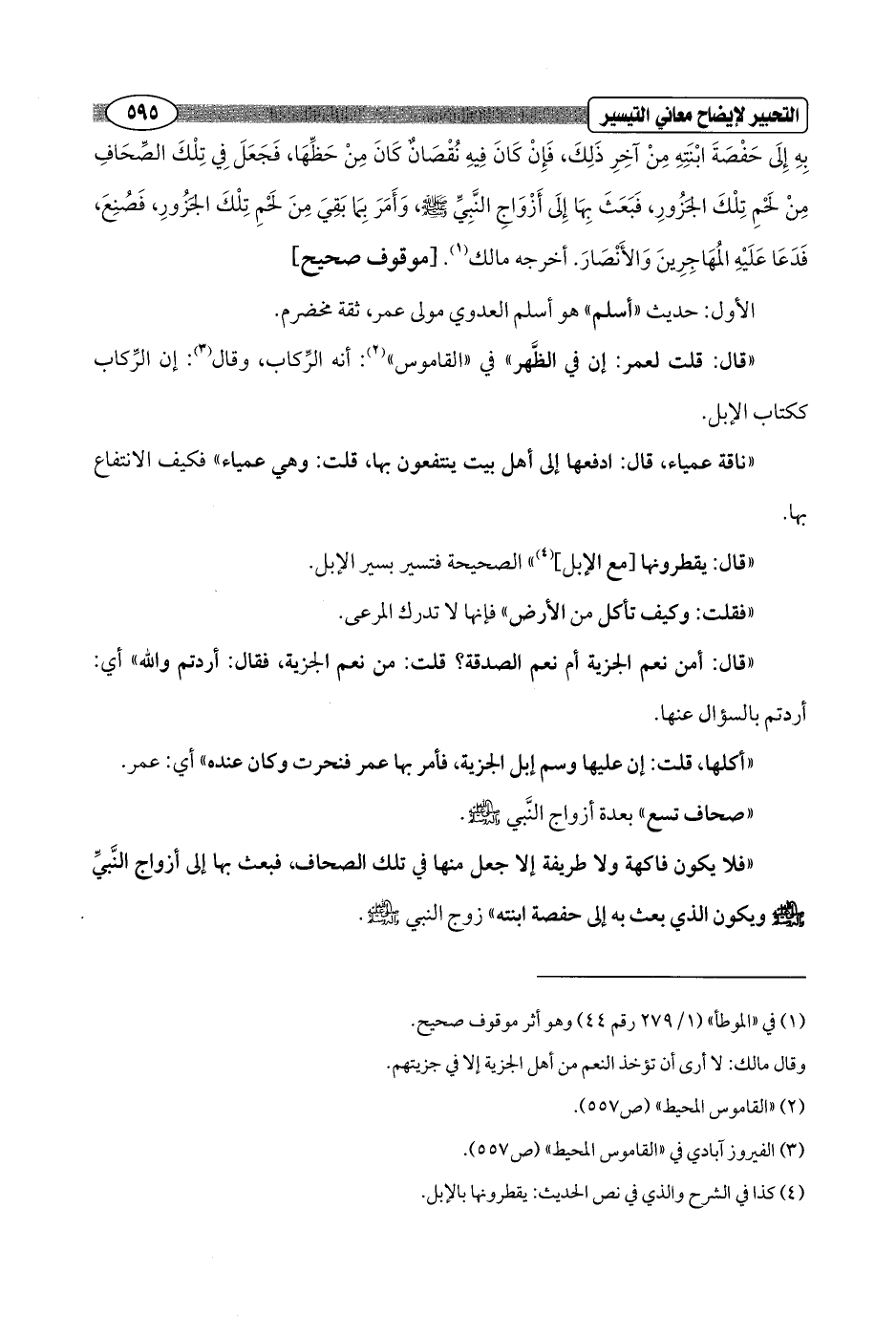 بِهِ إِلَى حَفْصَةَ ابْنَتِهِ مِنْ آخِرِ ذَلِكَ، فَإِنْ كَانَ فِيهِ نُقْصَانٌ كَانَ مِنْ حَظِّهَا، فَجَعَلَ في تِلْكَ الصِّحَافِ مِنْ لَحْمِ تِلْكَ الجَزُورِ، فَبَعَثَ بِهَا إِلَى أَزْوَاجِ النَّبِيِّ - صلى الله عليه وسلم -، وَأَمَرَ بِمَا بَقِيَ مِنَ لَحْمِ تِلْكَ الجَزُورِ، فَصُنِعَ، فَدَعَا عَلَيْهِ المُهَاجِرِينَ وَالأَنْصَارَ. أخرجه مالك (¬1). [موقوف صحيح]