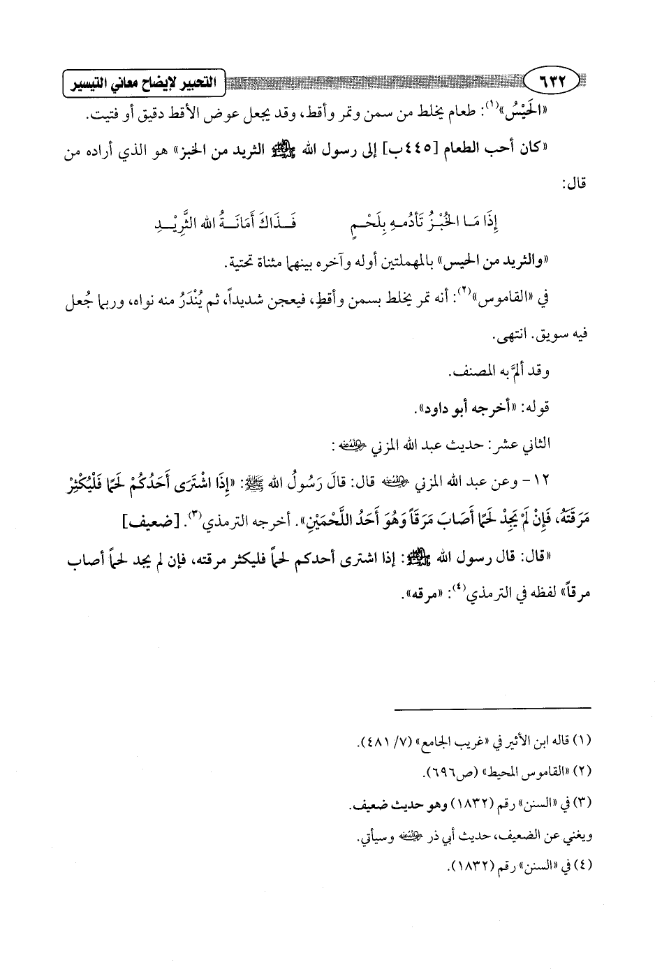 12 - وعن عبد الله المزني - رضي الله عنه - قال: قَالَ رَسُولُ الله - صلى الله عليه وسلم -: "إِذَا اشْتَرَى أَحَدُكُمْ لَحمًا فَلْيُكْثِرْ مَرَقَتَهُ، فَإِنْ لَمْ يَجِدْ لَحمًا أَصَابَ مَرَقَاً وَهُوَ أَحَدُ اللَّحْمَيْنِ". أخرجه الترمذي (¬3). [ضعيف]